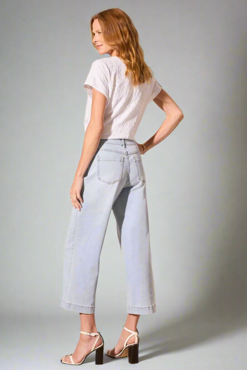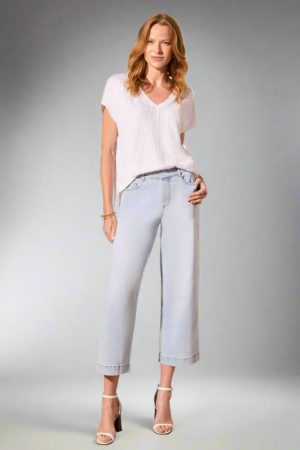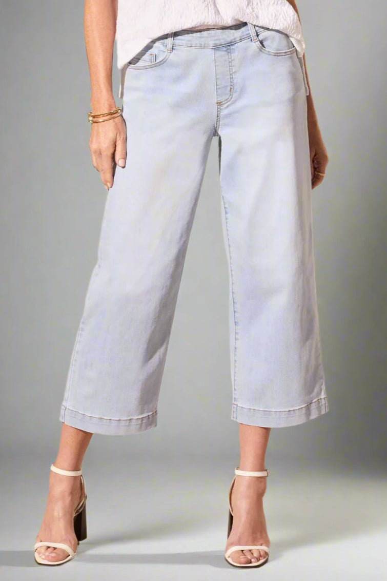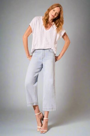Step into comfort and style with Tribal’s Audrey Wide Leg Jean. This cropped flare jean features a pull-on design, faux fly, and functional pockets in the front and back. The straight and loose cropped leg has a slight flare, effortlessly falling over the ankles for a chic look. Made with stretch denim fabric that has a beautiful stonewash appearance, these jeans are perfect for all-day wear.