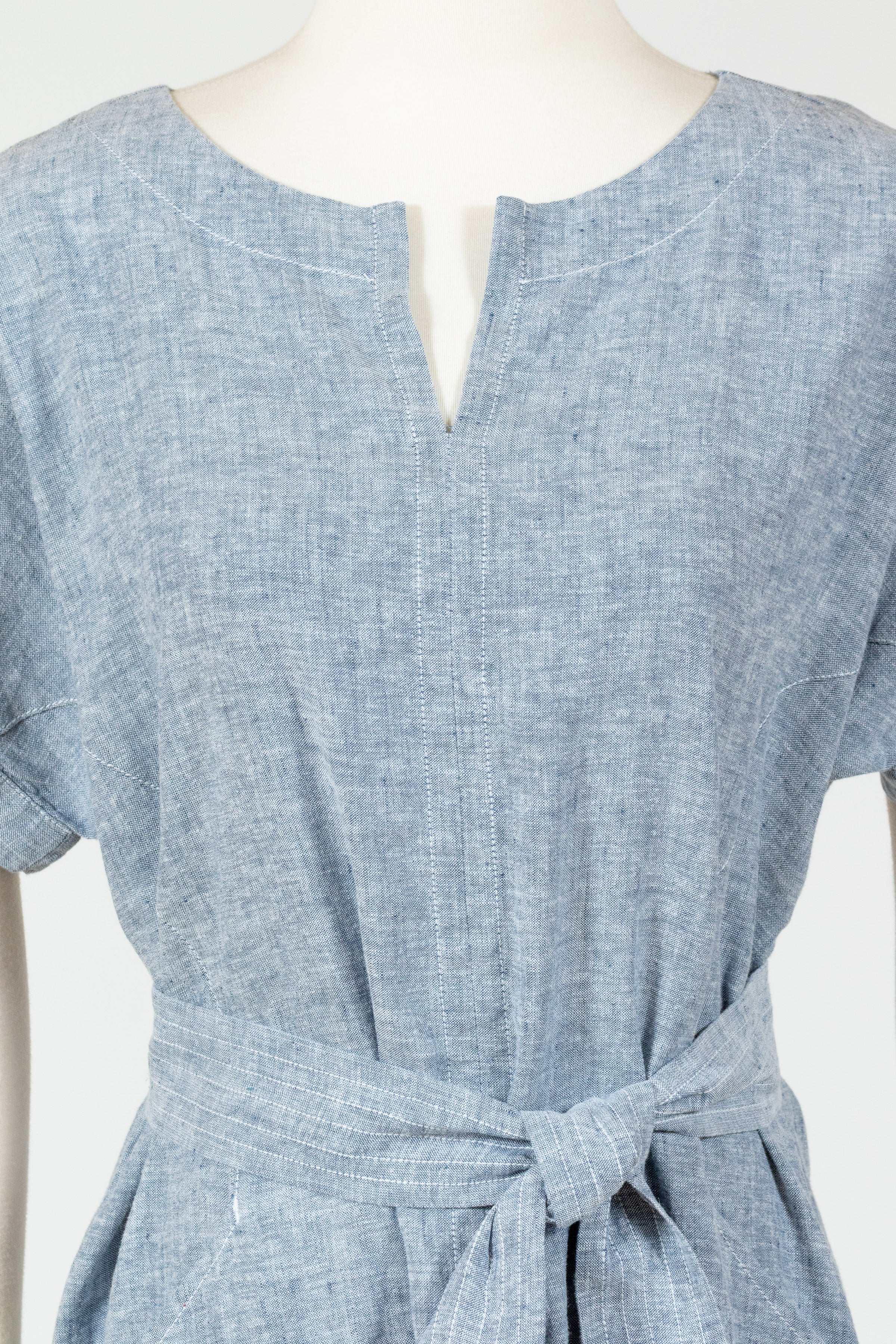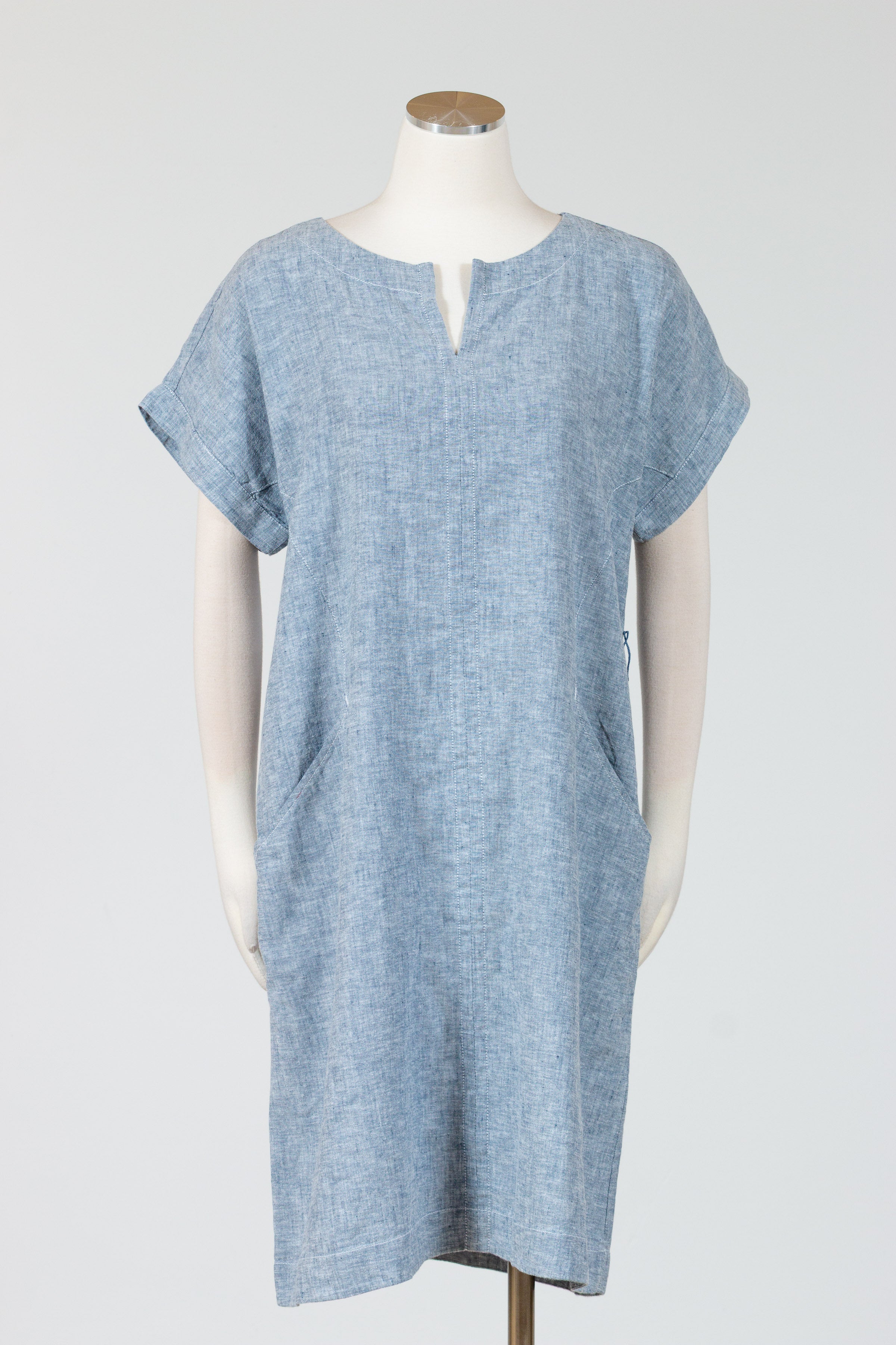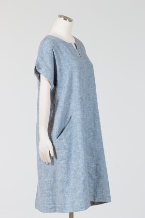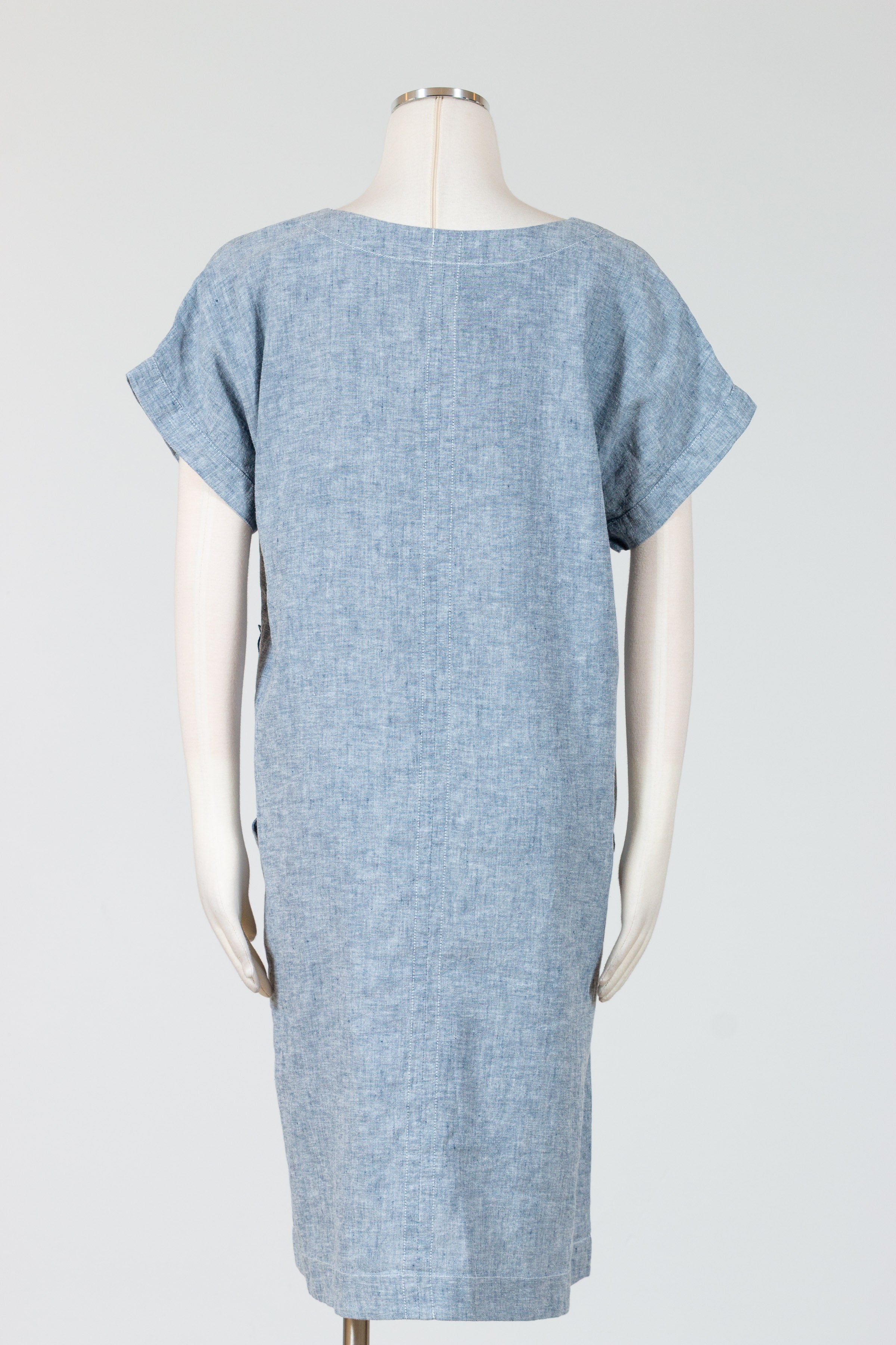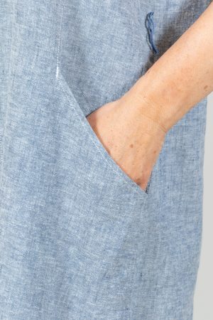 Experience supreme comfort and effortless style in Habitat’s Bethany Dress. This knee-length shift dress comes in a beautiful blue chambray linen and features a notched V-neck and short sleeves. It also includes a fabric belt to cinch in at the waist for a flattering fit. Plus, with two curved side pockets and front seaming, you’ll have all the functionality you need without sacrificing style.