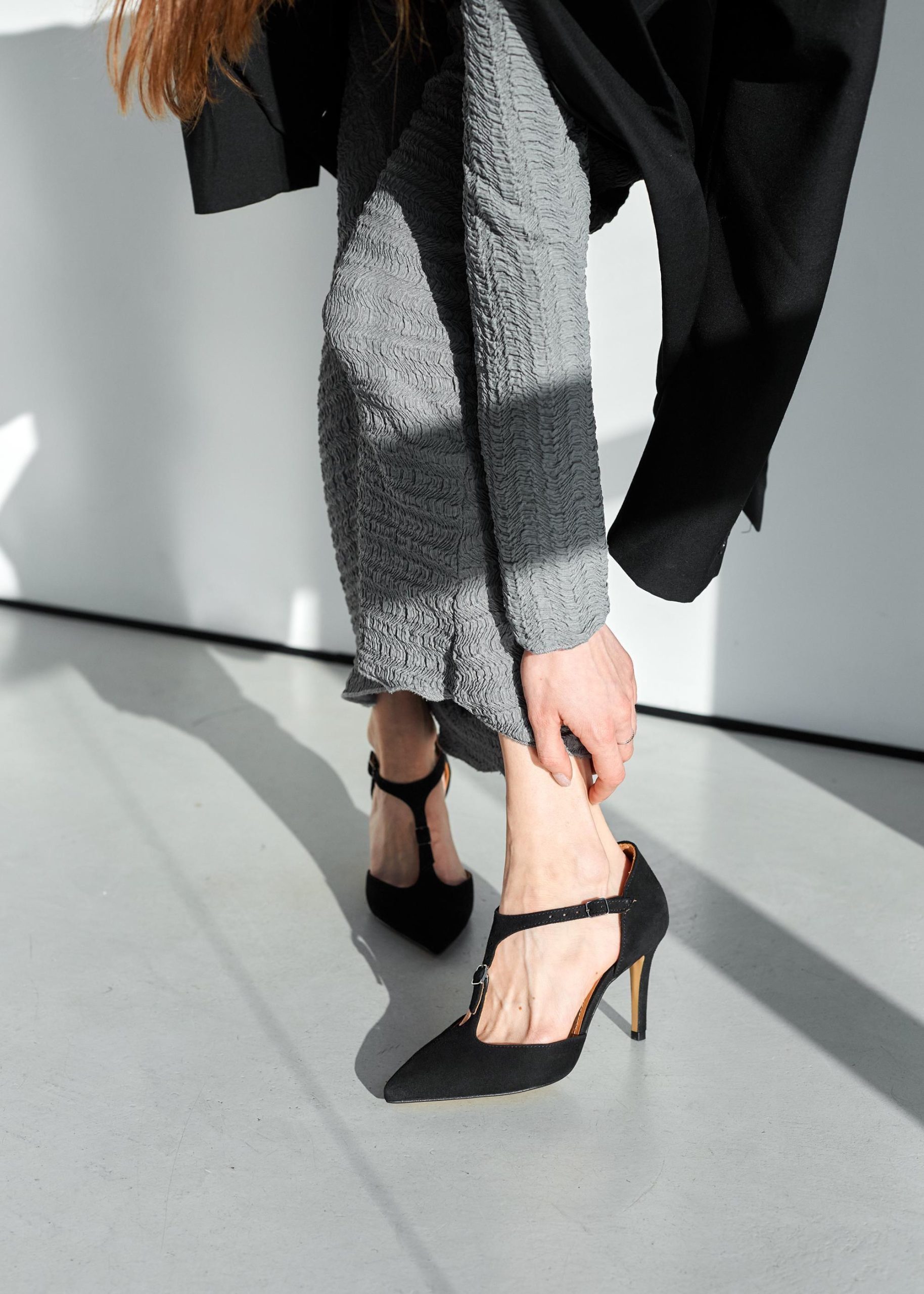 Be the first to review “Black Suede Sandals Ankle Strap Pointed Toe Stiletto”