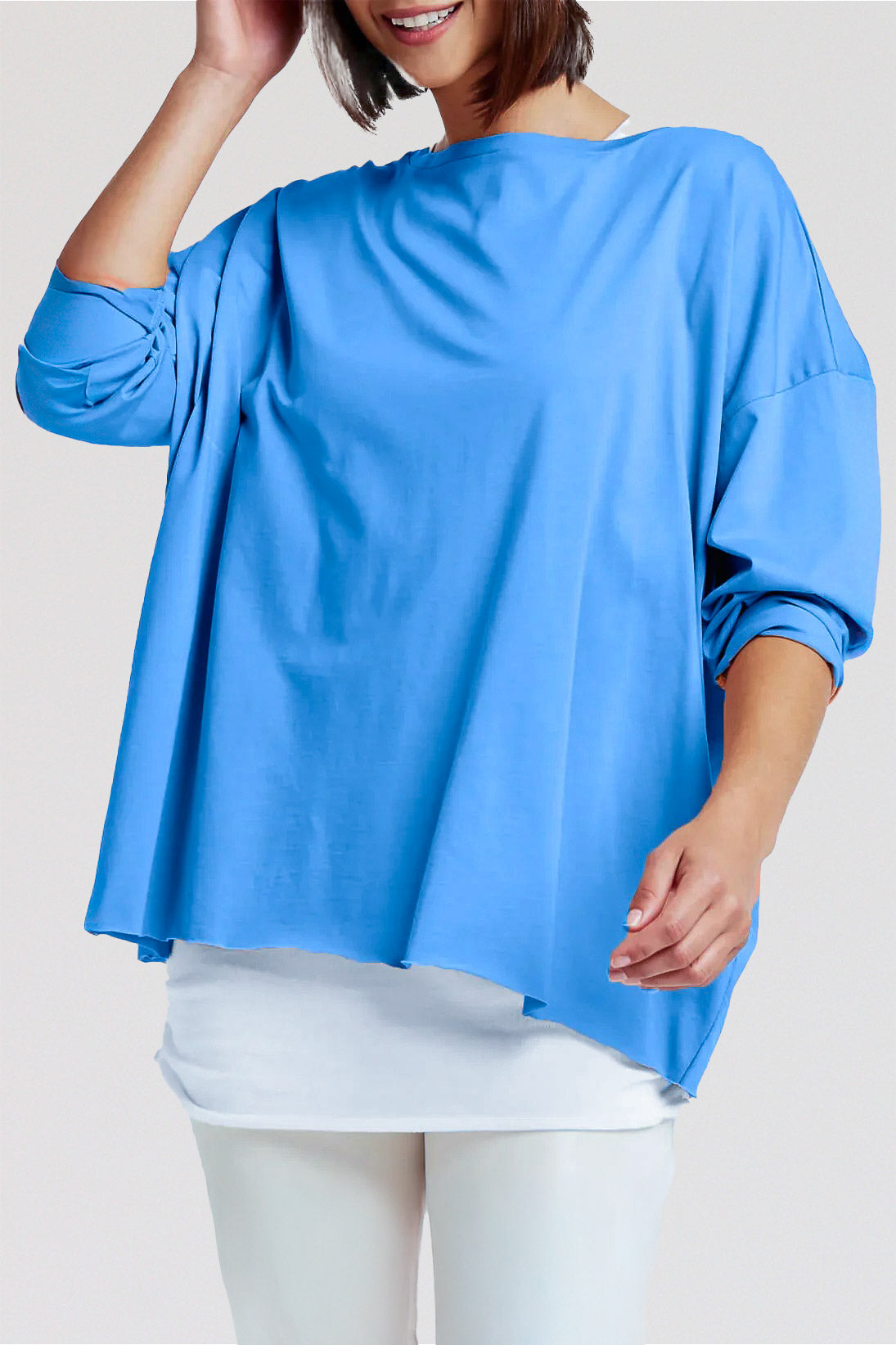 PLANET by Lauren G’s Boxy Tee features an elevated crew neckline and a playful, short boxy design. Its loose fit is complemented by slightly dropped long sleeves, and the turned up raw edges add a touch of charm. With no pockets, this tee is perfect for a carefree, laid-back look.