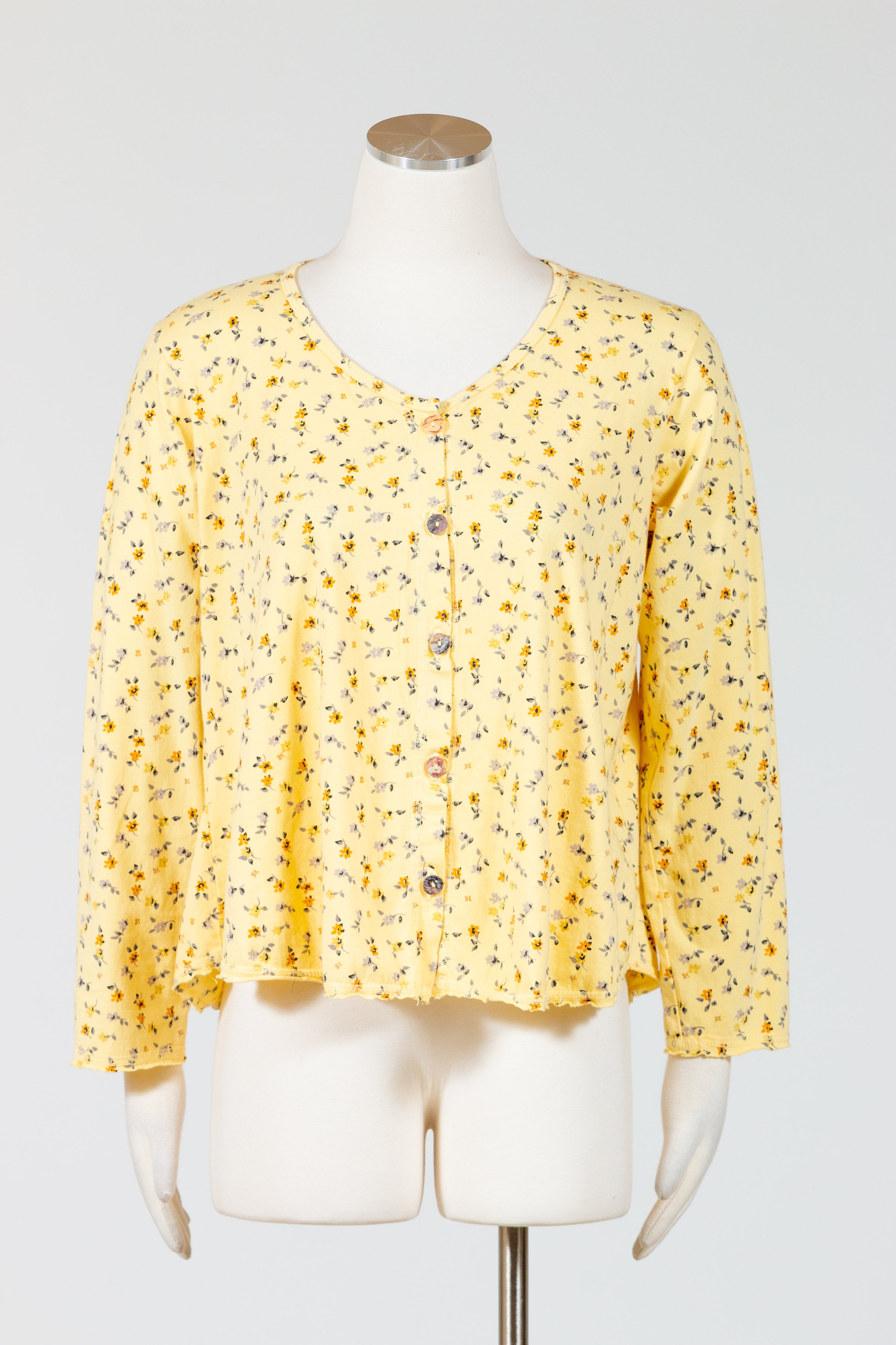 Wrap yourself in comfort and style with Prairie Cotton’s lightweight Cardigan. Made from soft cotton and featuring a delicate floral print, this relaxed-fit cardigan is perfect for any casual occasion. With a soft V neckline and long sleeves, it falls just above the hips with raw, rolled edges. No pockets. Let this cardigan be your go-to for effortless style.