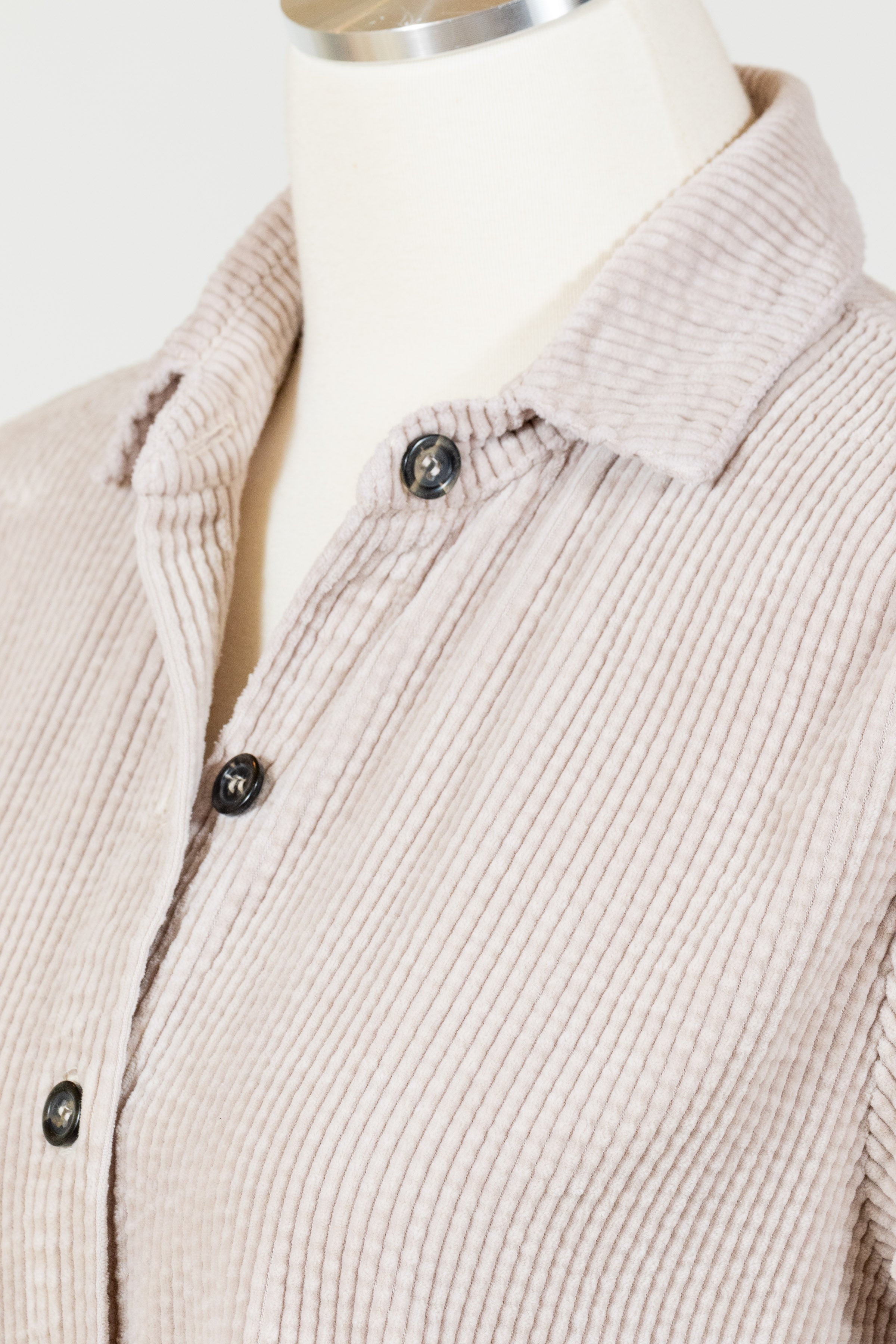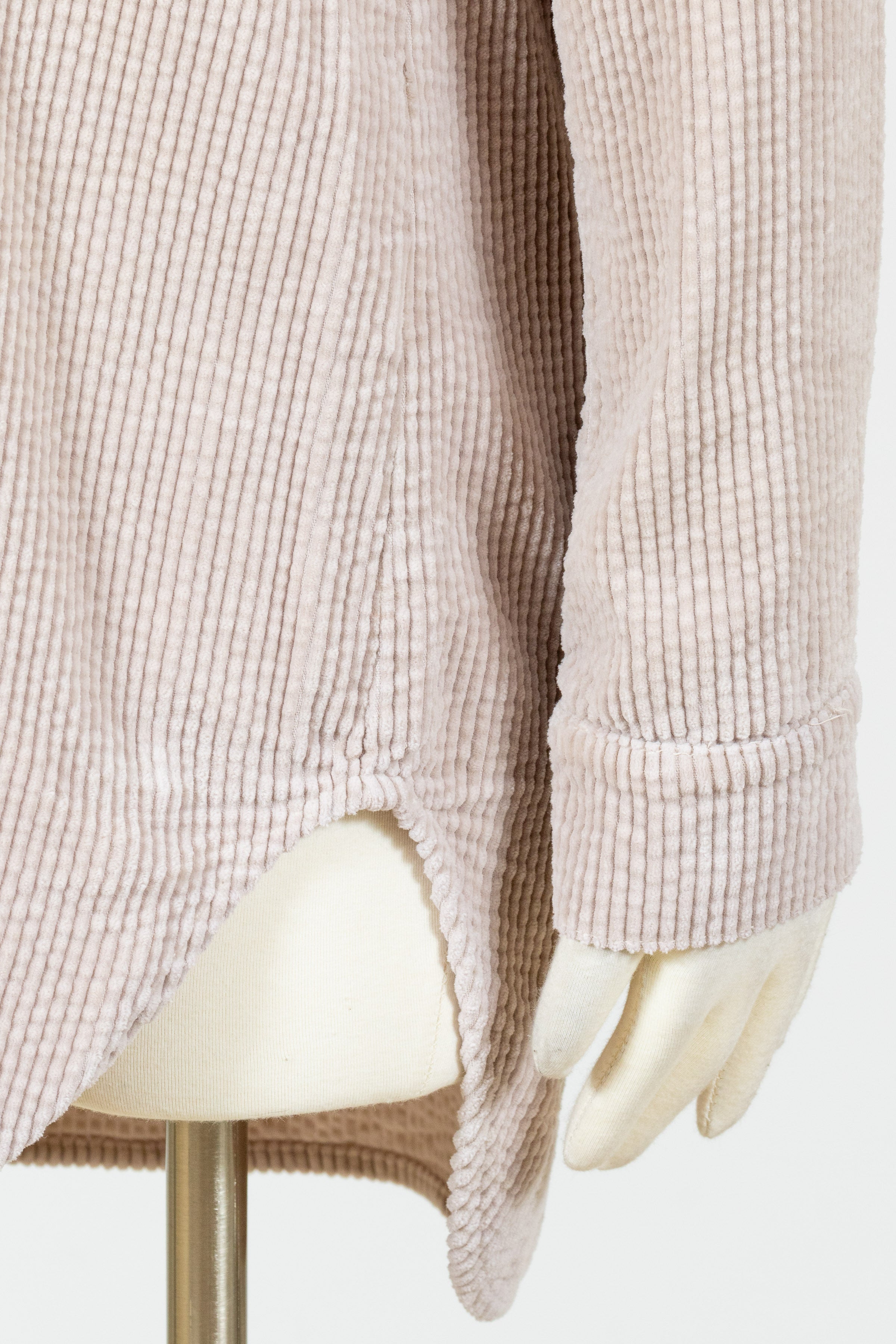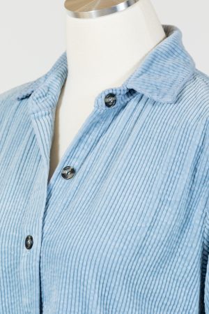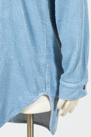 Cut Loose’s Corduroy Long Shirt is offered in a wide wale corduroy with a collared neck and full-length sleeves. Its straight silhouette falls below the hips and features a curved hemline, longer in the back. This shirt button ups in front with buttoned cuffs, perfect as a standalone or layered over another shirt. No pockets to distract from its cool, easy style.