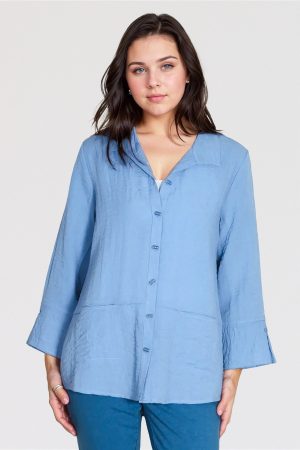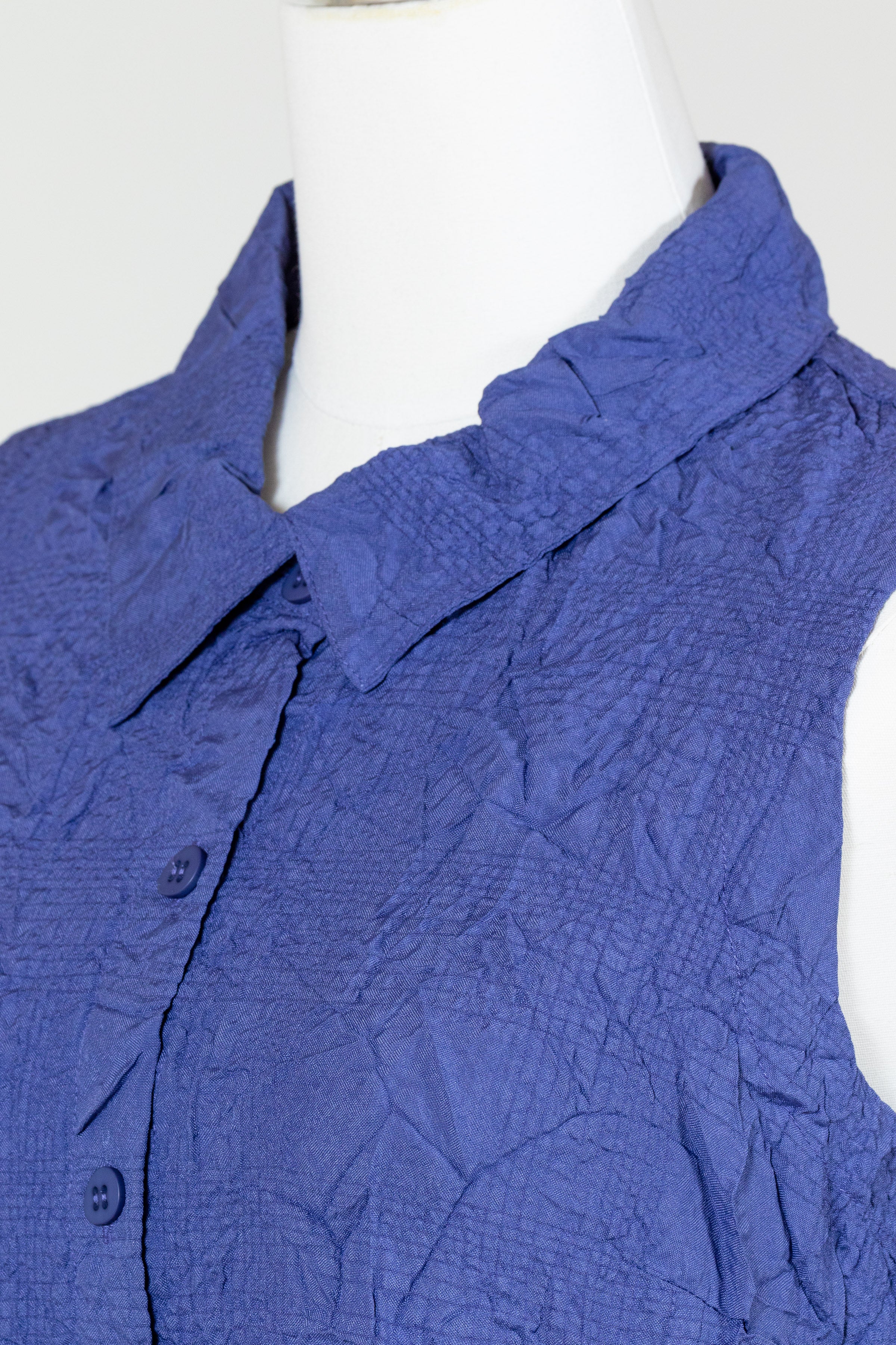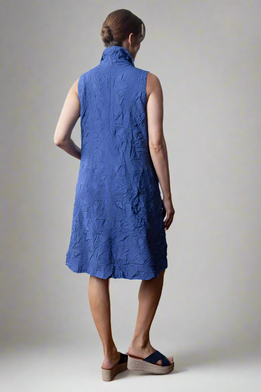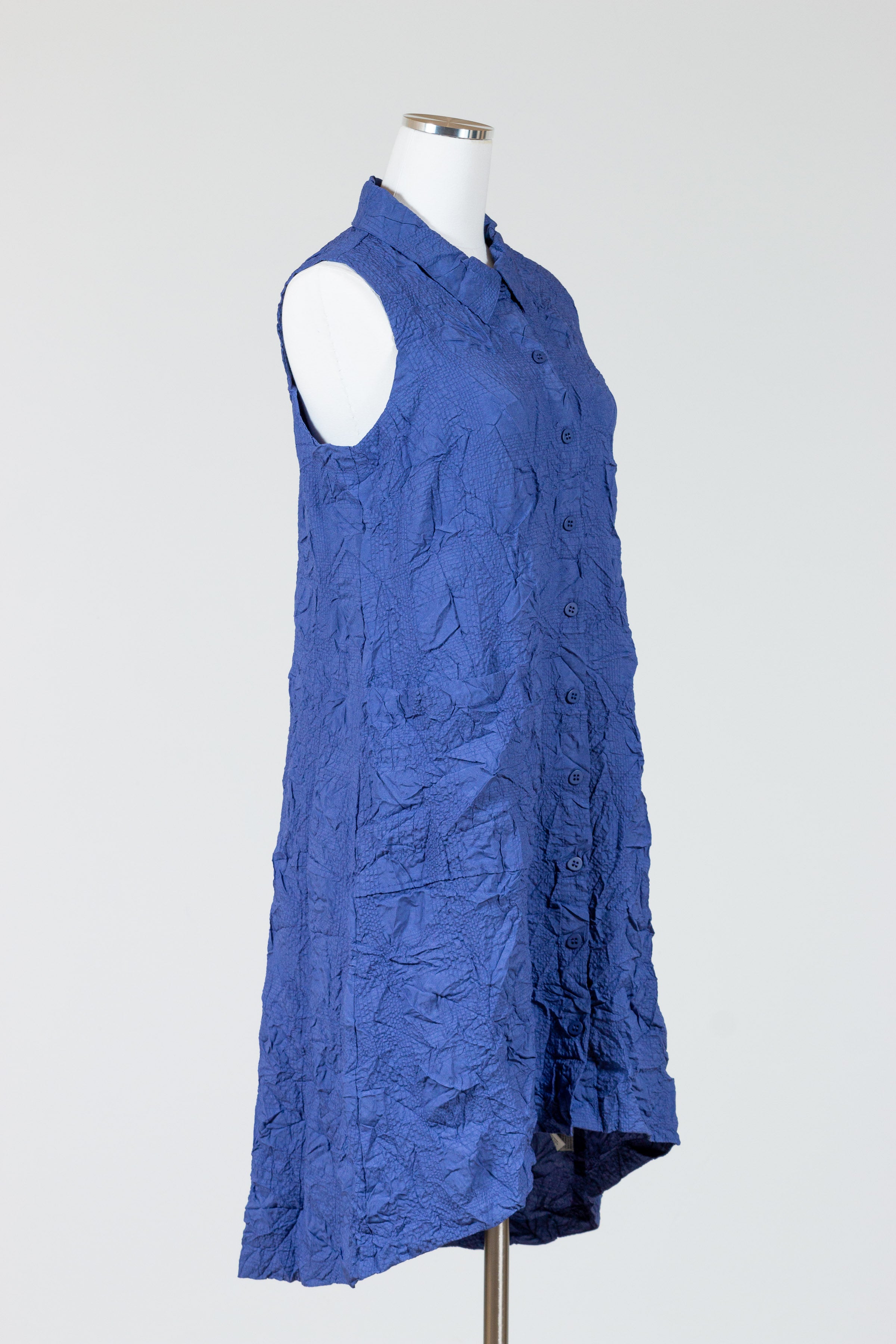 Olivia by Habitat’s Crush Hi-Lo Pocket Dress is a sleeveless, collared, shirtdress made with a soft crushed puckered fabric. This dress offers an easy and comfortable fit with a relaxed silhouette. Buttons down the front with tonal buttons, and features two front patch pockets. Crushed fabric has a tonal windowpane stripe for texture. Falls about knee length on most, a little longer in the back. Add it to your collection today!