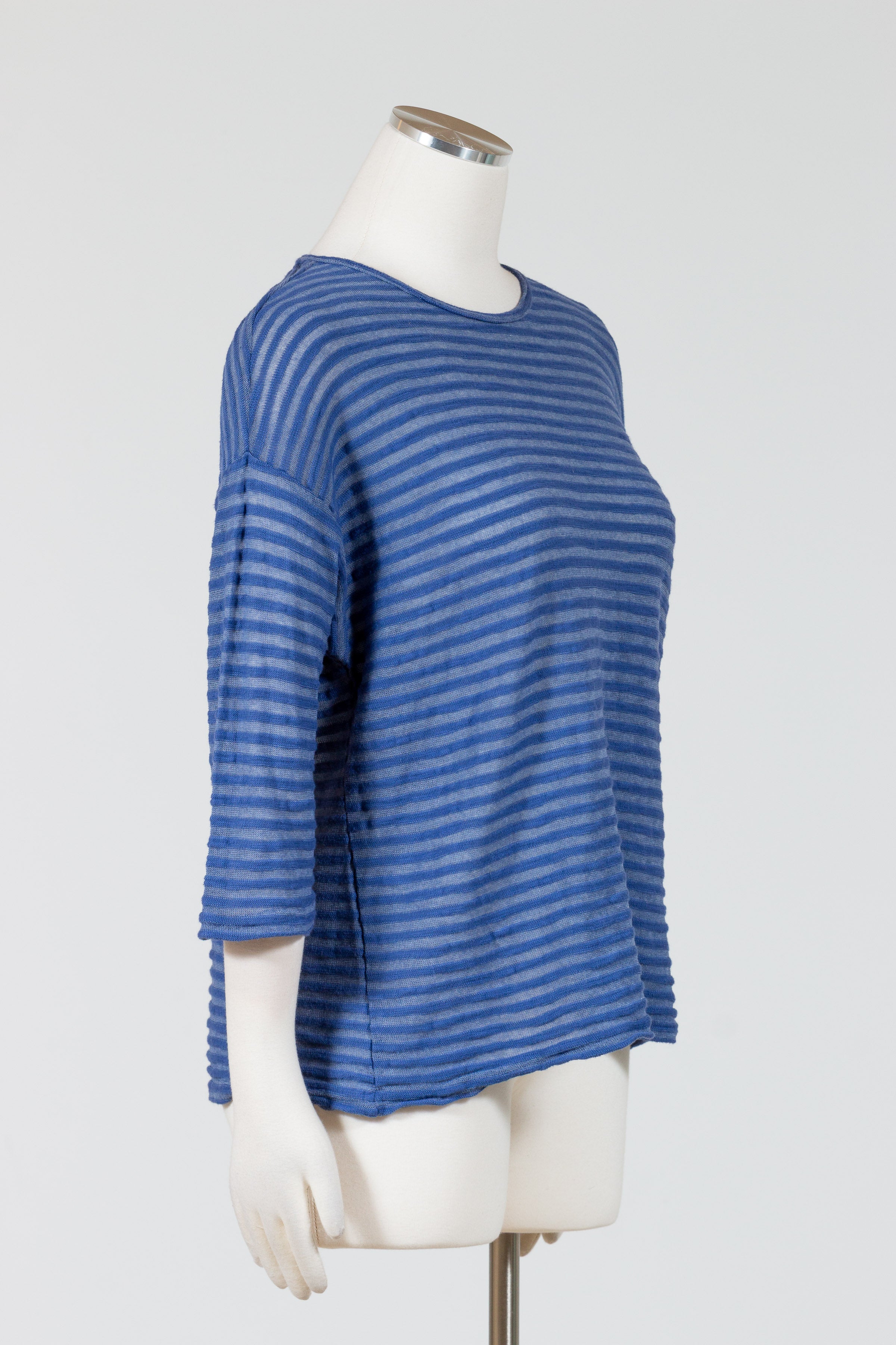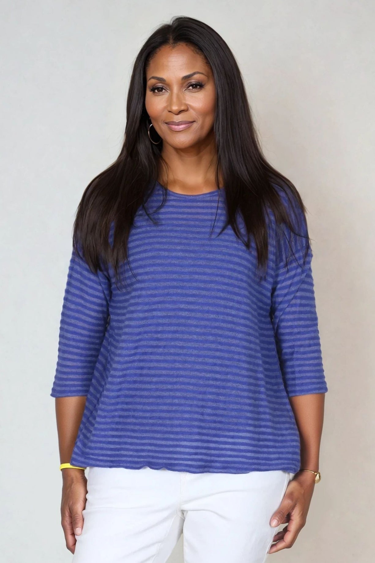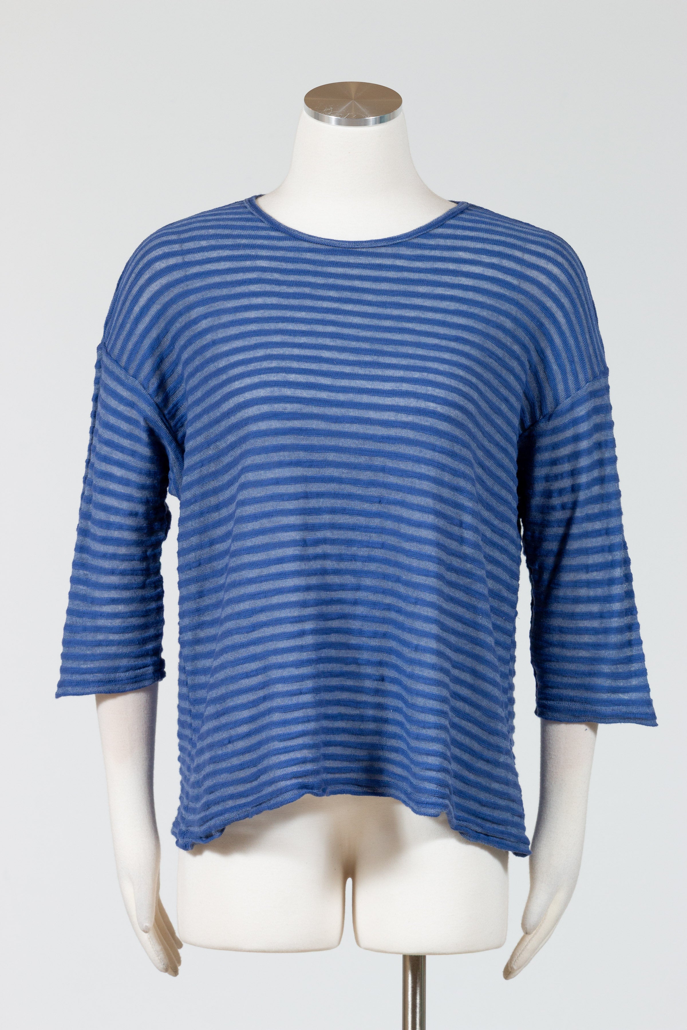 Experience the ultimate summer staple with Cut Loose’s Drop Shoulder Tee! This striped tee is expertly crafted from a burnout stretch knit material, making it a must-have for the sunny season. Featuring a crew neckline, three quarter length sleeves, and a relaxed fit, it falls just over the waist for a flattering drape. Don’t wait to add this essential piece to your spring/summer wardrobe!