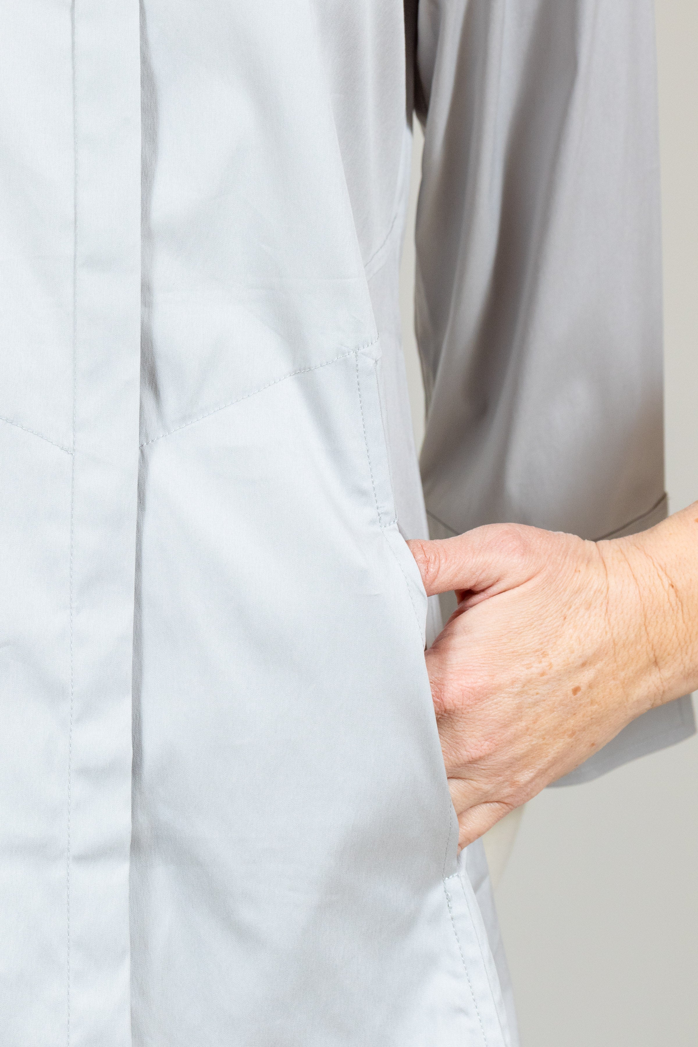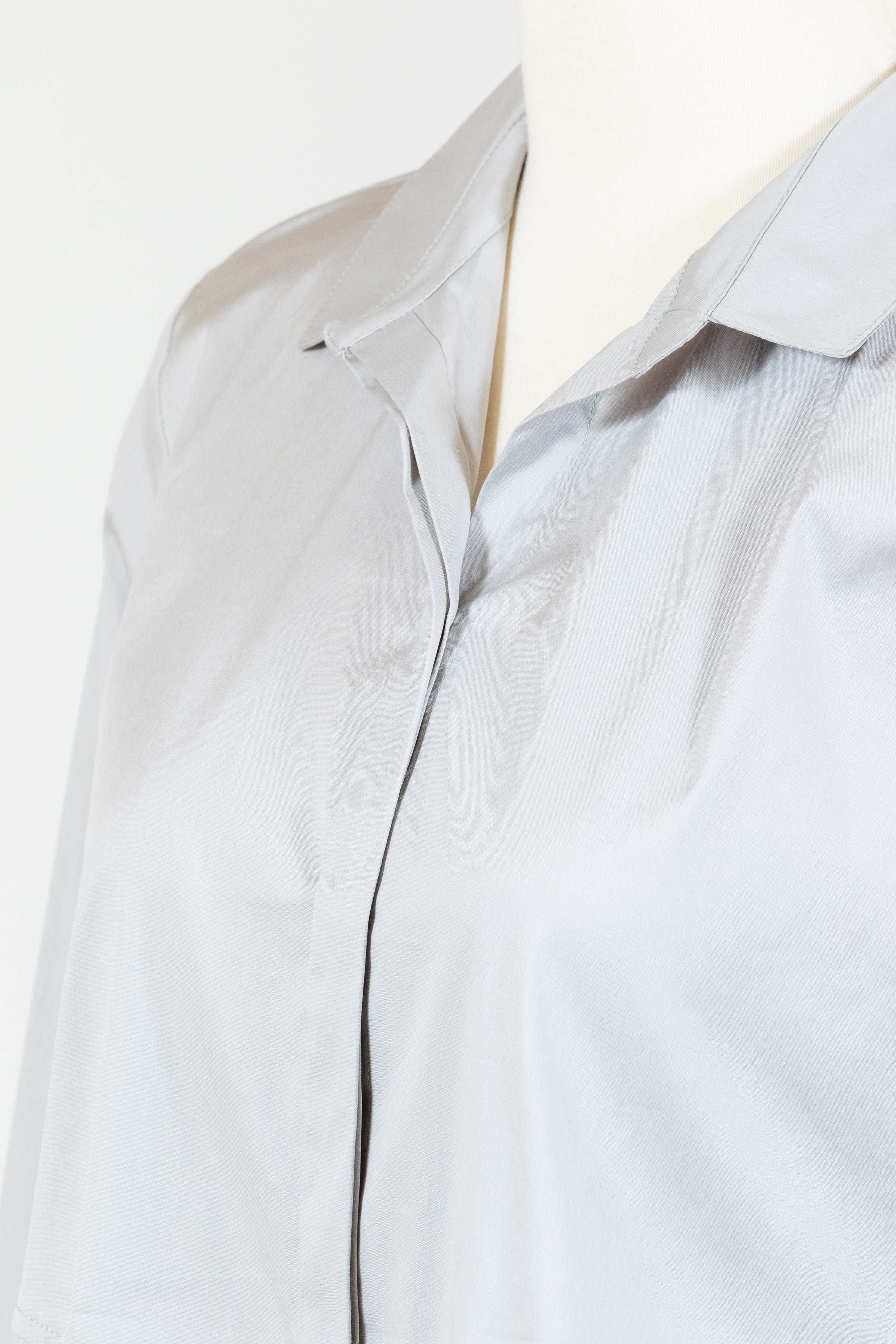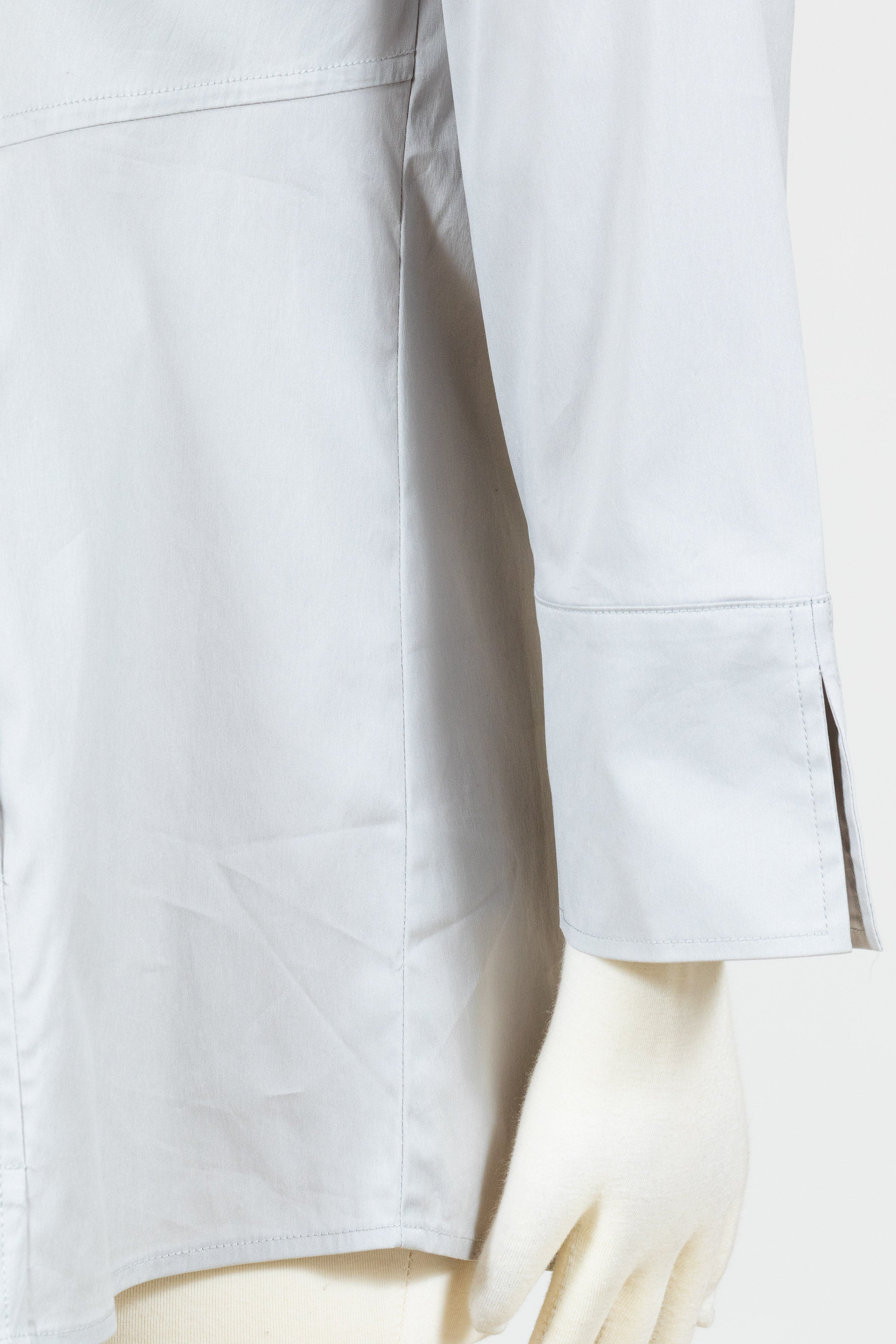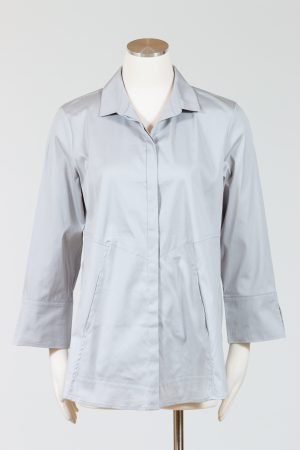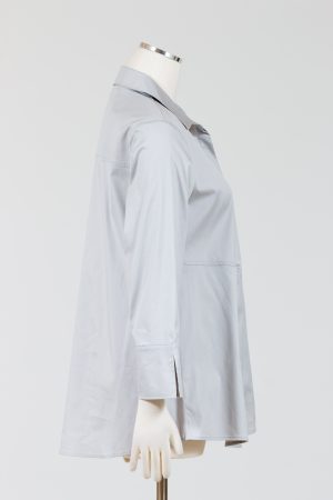 Habitat’s Hidden Placket Shirt is a relaxed button down collared shirt, streamlined with a hidden button placket. Made of a stretch woven cotton shirting fabric for a very comfortable feel.  Sleeves are three-quarter length with a banded slit cuff that can be worn folded up or left down for length. Falls well over hips to be worn untucked. Curved hemline. Angled front seaming with invisible on-seam front pockets.  Â