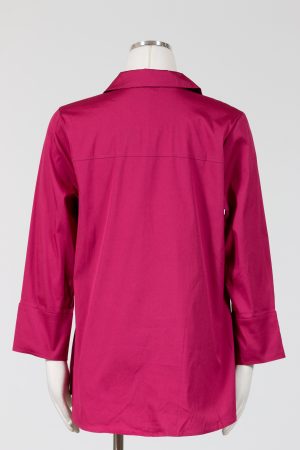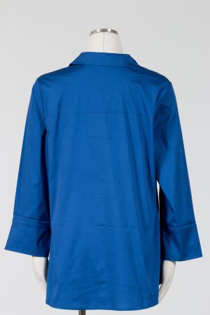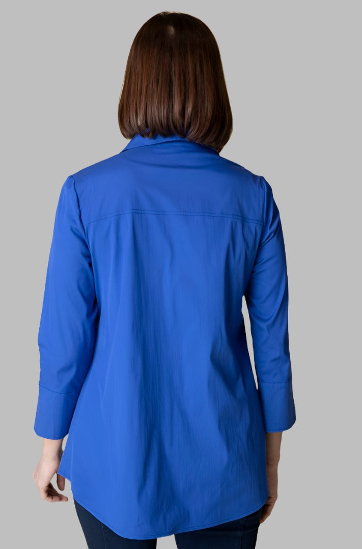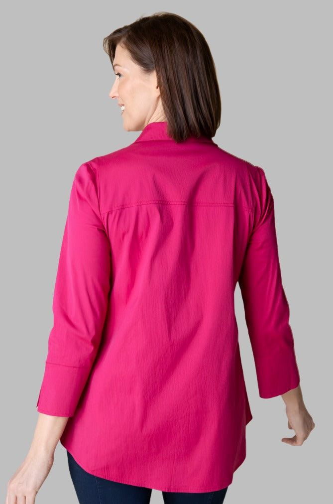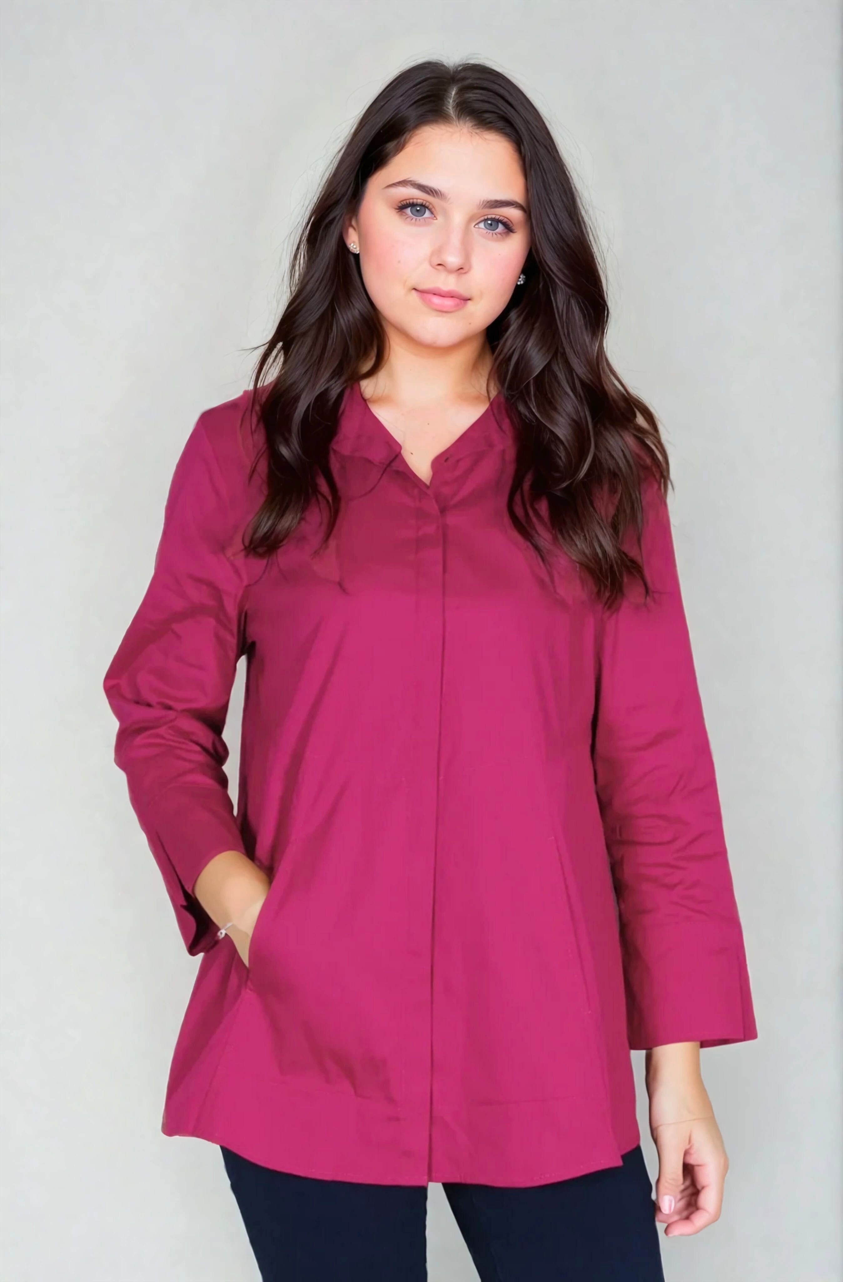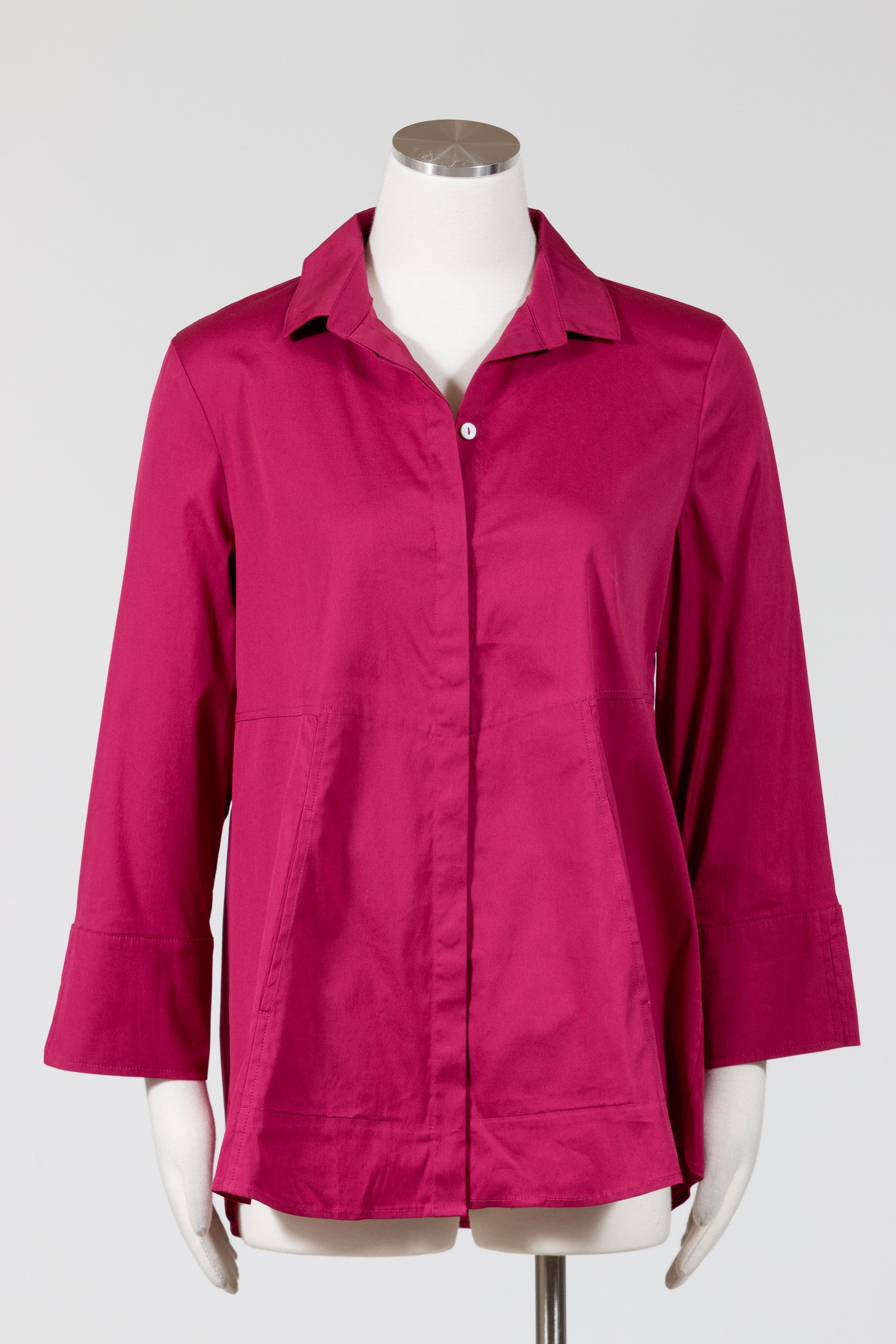 Habitat’s Hidden Placket Shirt is a relaxed button down collared shirt, streamlined with a hidden button placket. Made of a stretch woven cotton shirting fabric for a very comfortable feel. Sleeves are three-quarter length with a banded slit cuff that can be worn folded up or left down for length. Falls well over hips to be worn untucked. Curved hemline. Angled front seaming with invisible on-seam front pockets.  Â