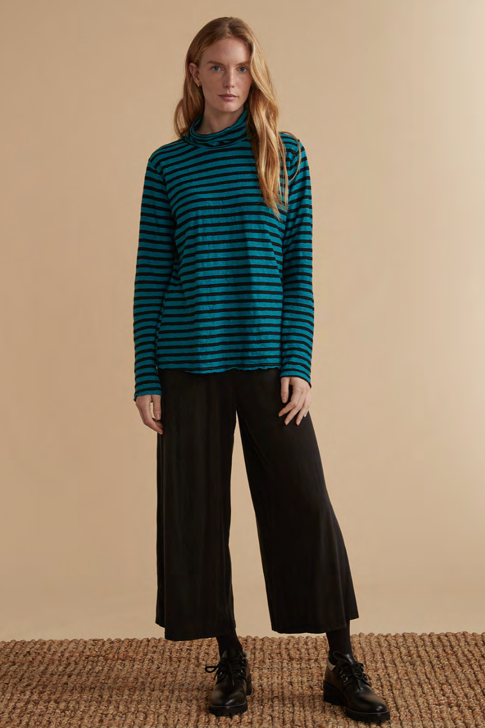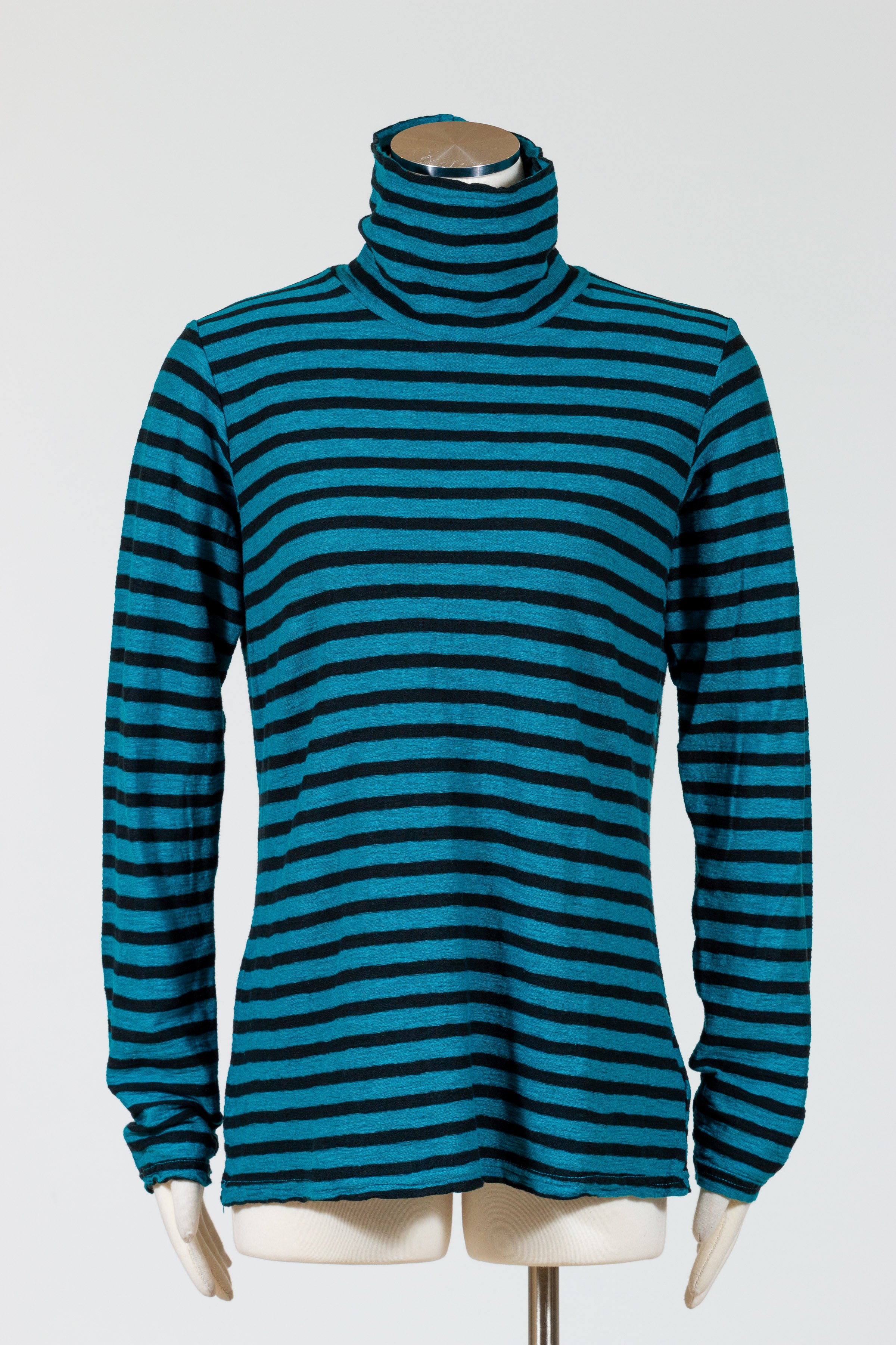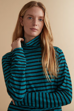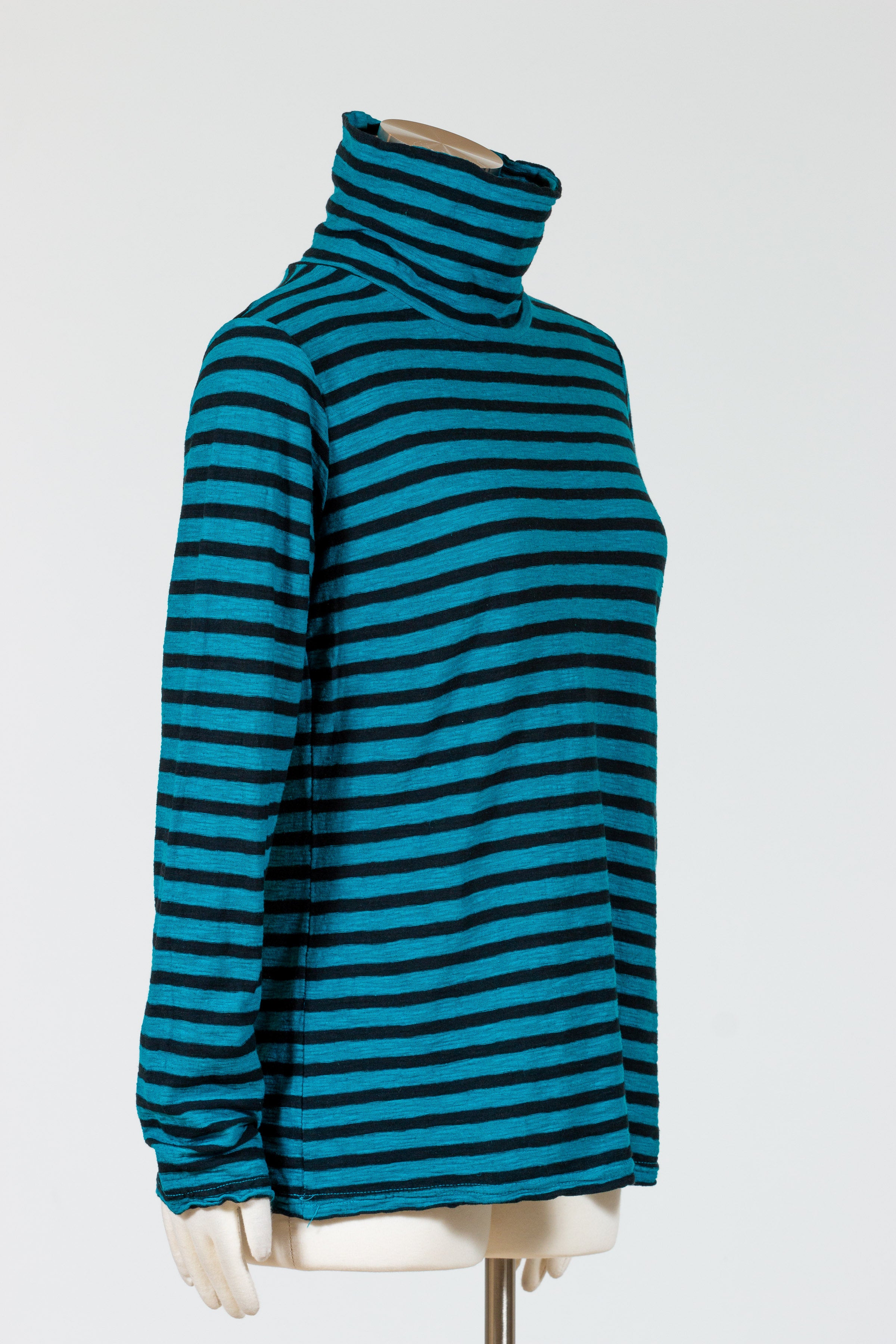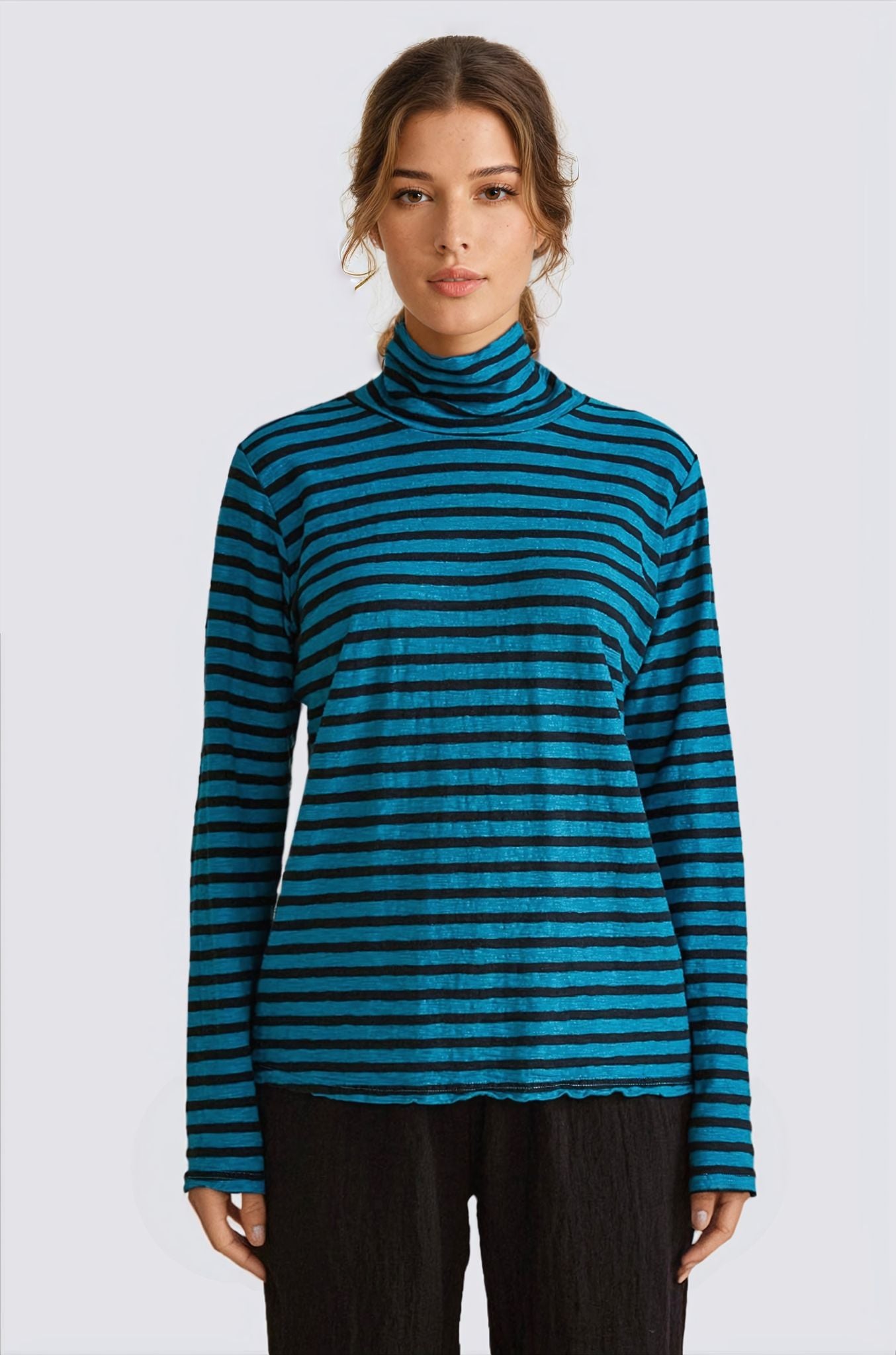 Experience the ultimate comfort and style with Cut Loose’s Long Sleeve Turtle Neck! This black striped turtleneck pullover boasts a relaxed fit that falls just over the hips, perfect for any season. Crafted from a luxurious knit blend of cotton and linen, this top will keep you comfortable and looking fabulous. Say goodbye to boring, uncomfortable clothing and hello to effortless elegance! No pockets.