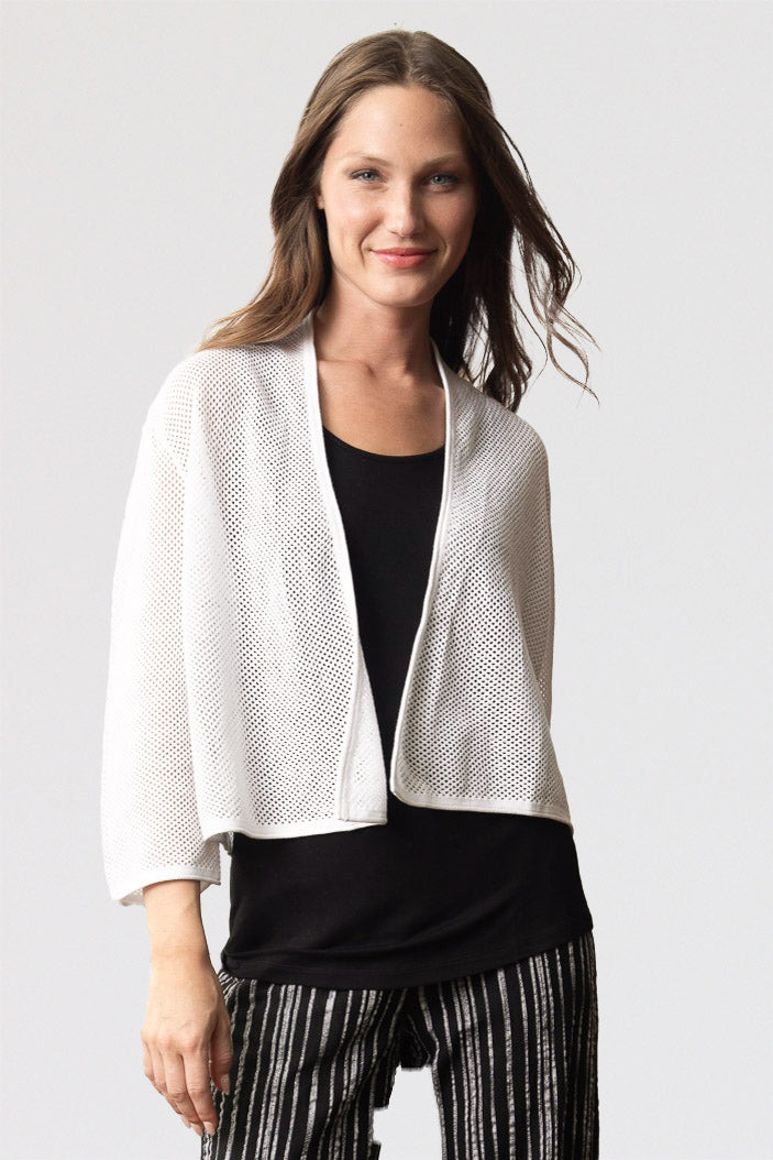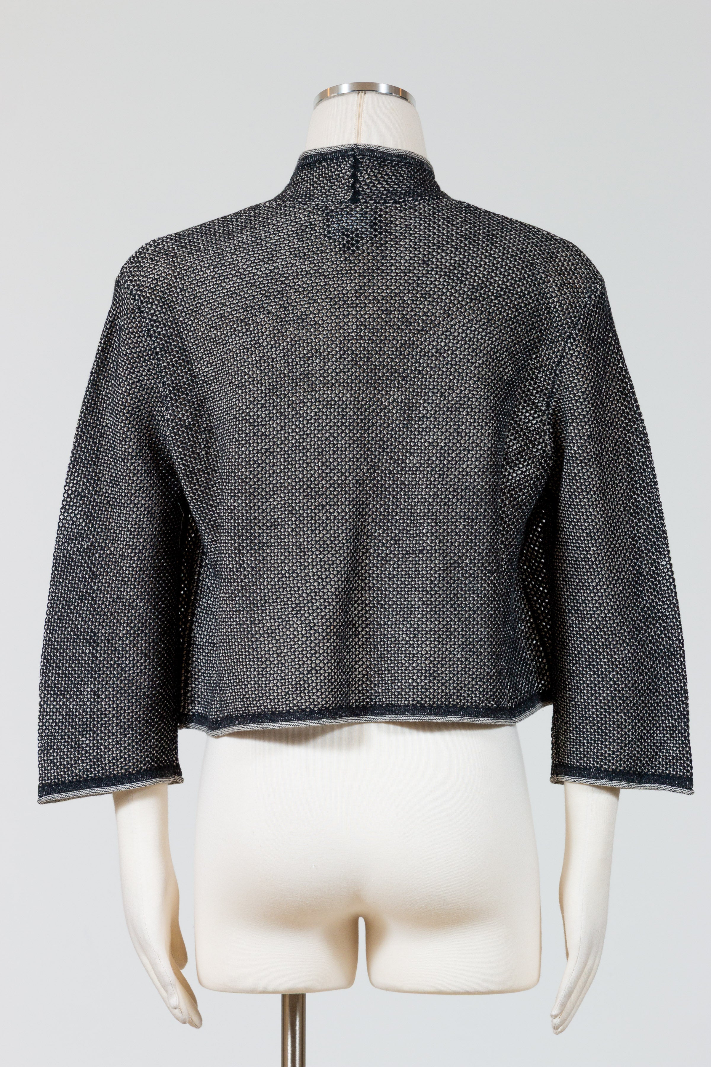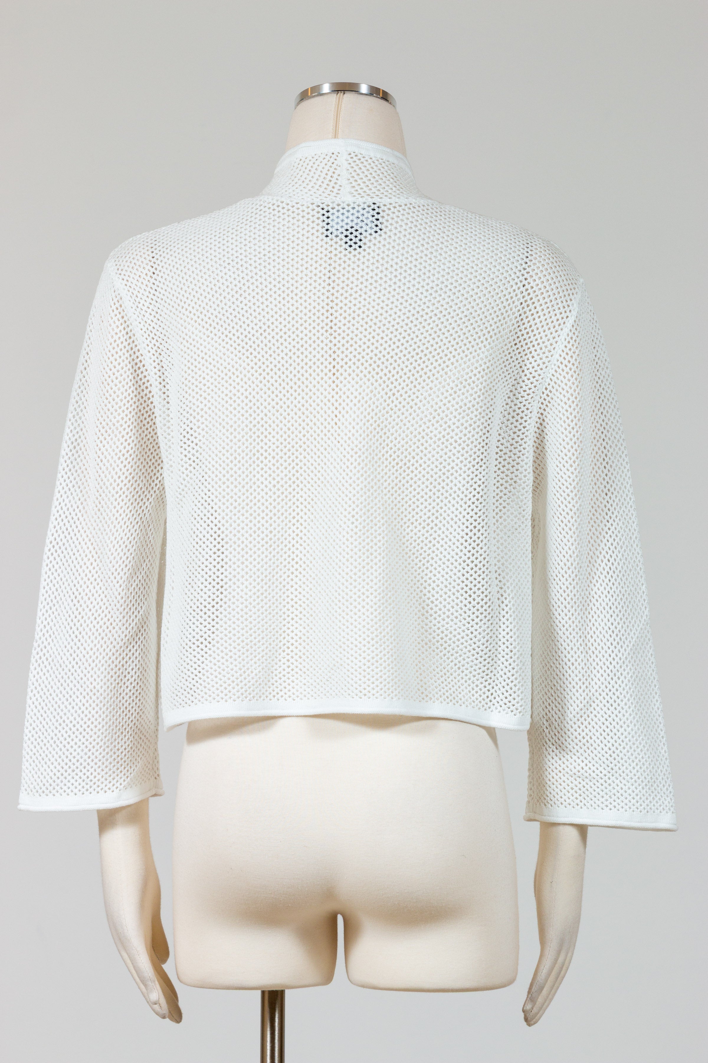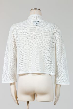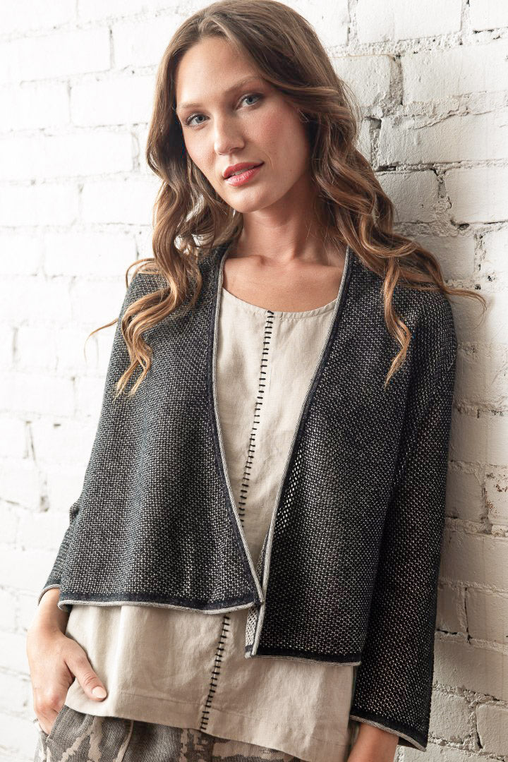 Experience unparalleled style with Olivia by Habitat’s Mesh Stitch Cardi – the perfect cropped, open-front topper with bracelet length sleeves. Crafted from a luxurious cotton/linen blend mesh knit fabric, this versatile piece is a must-have for any wardrobe. Layer it over sleeveless tops and dresses to elevate your outfits. In an elegant black color that is reversible to natural/beige, this cardi falls to waist length and features no pockets. Make a statement with Olivia by Habitat!