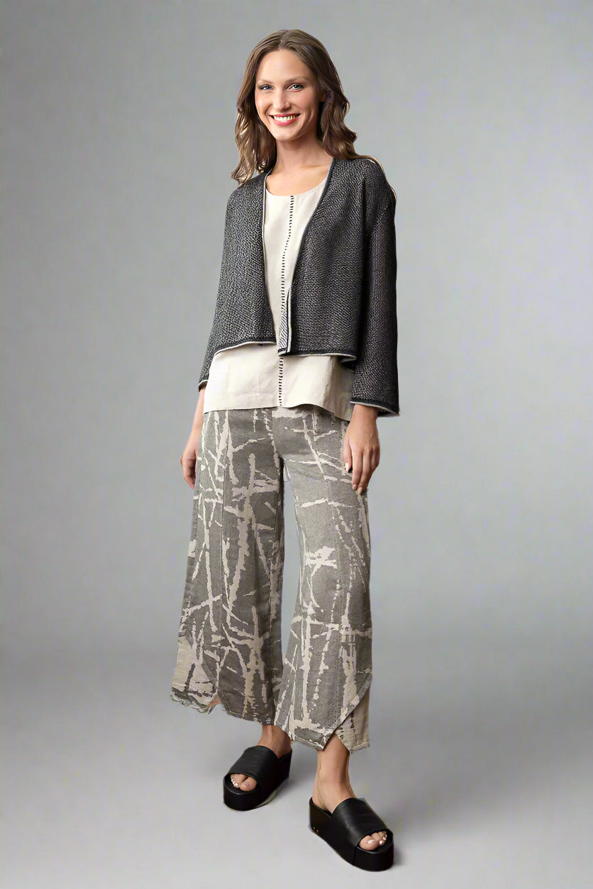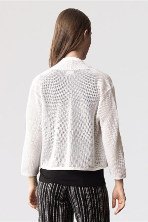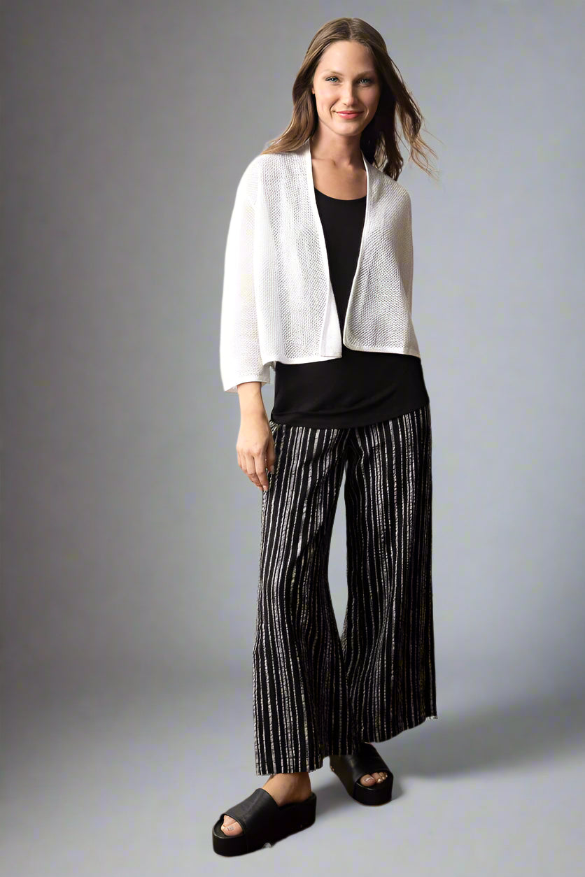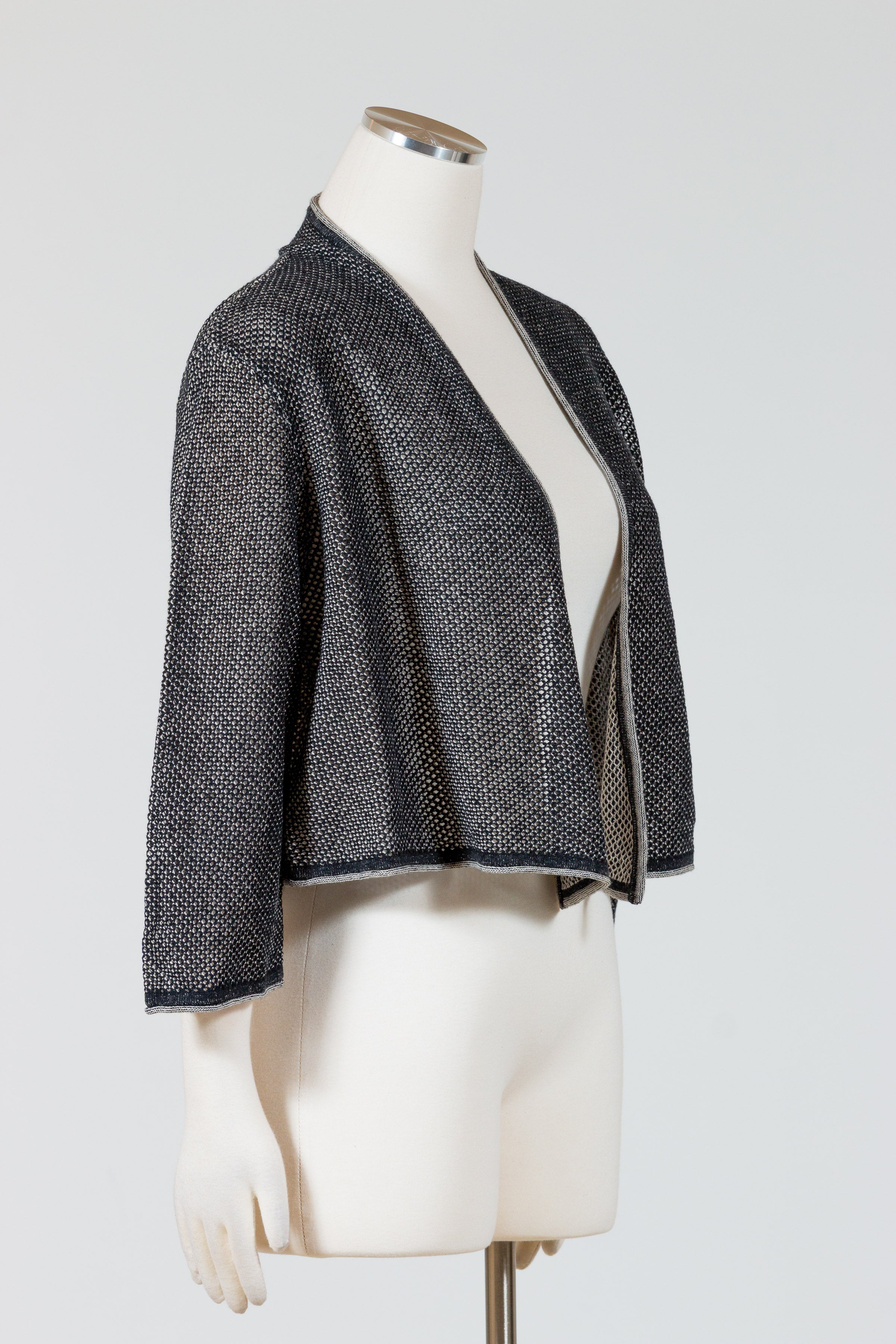 Experience unparalleled style with Olivia by Habitat’s Mesh Stitch Cardi – the perfect cropped, open-front topper with bracelet length sleeves. Crafted from a luxurious cotton/linen blend mesh knit fabric, this versatile piece is a must-have for any wardrobe. Layer it over sleeveless tops and dresses to elevate your outfits. In an elegant black color that is reversible to natural/beige, this cardi falls to waist length and features no pockets. Make a statement with Olivia by Habitat!