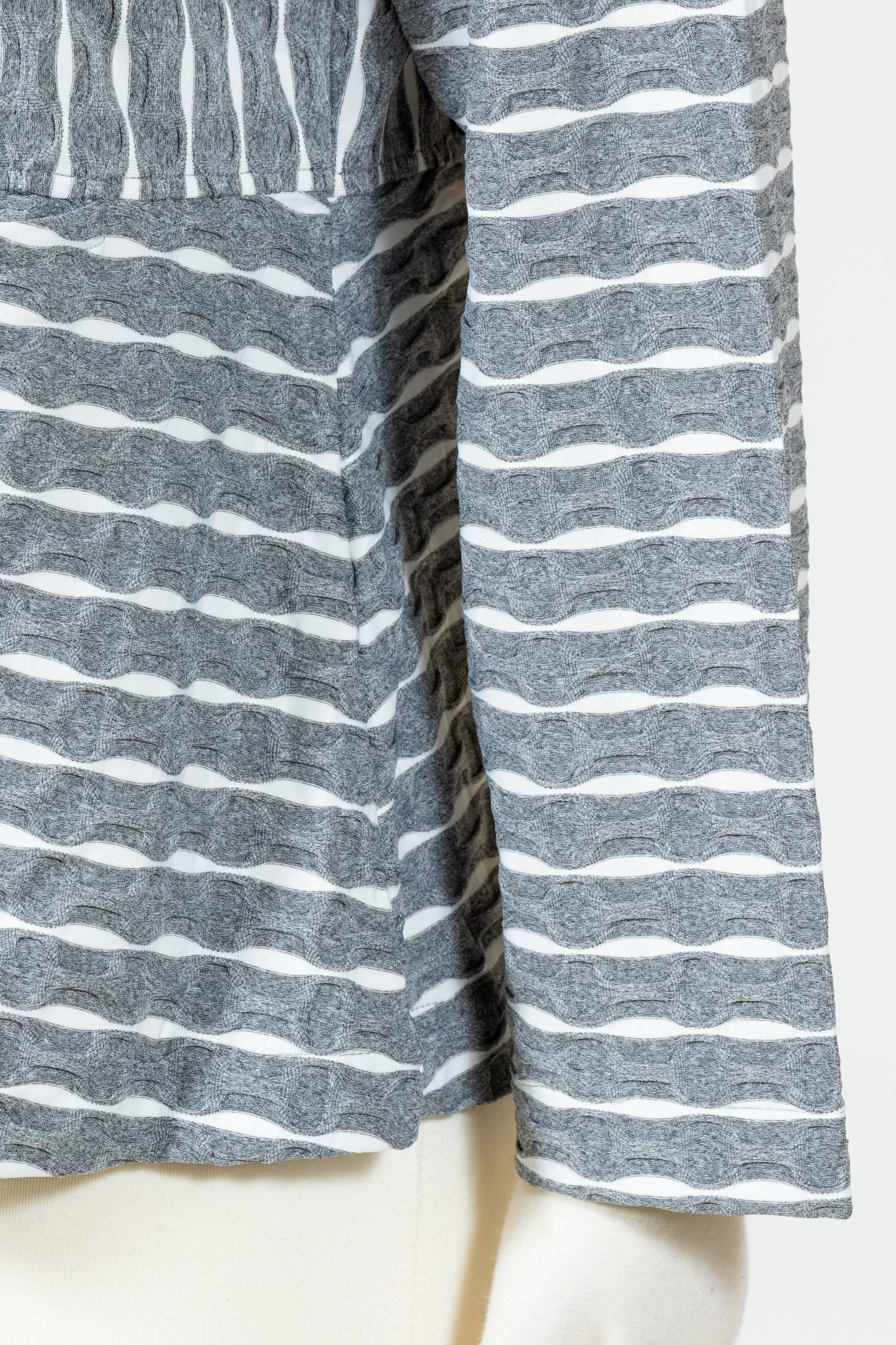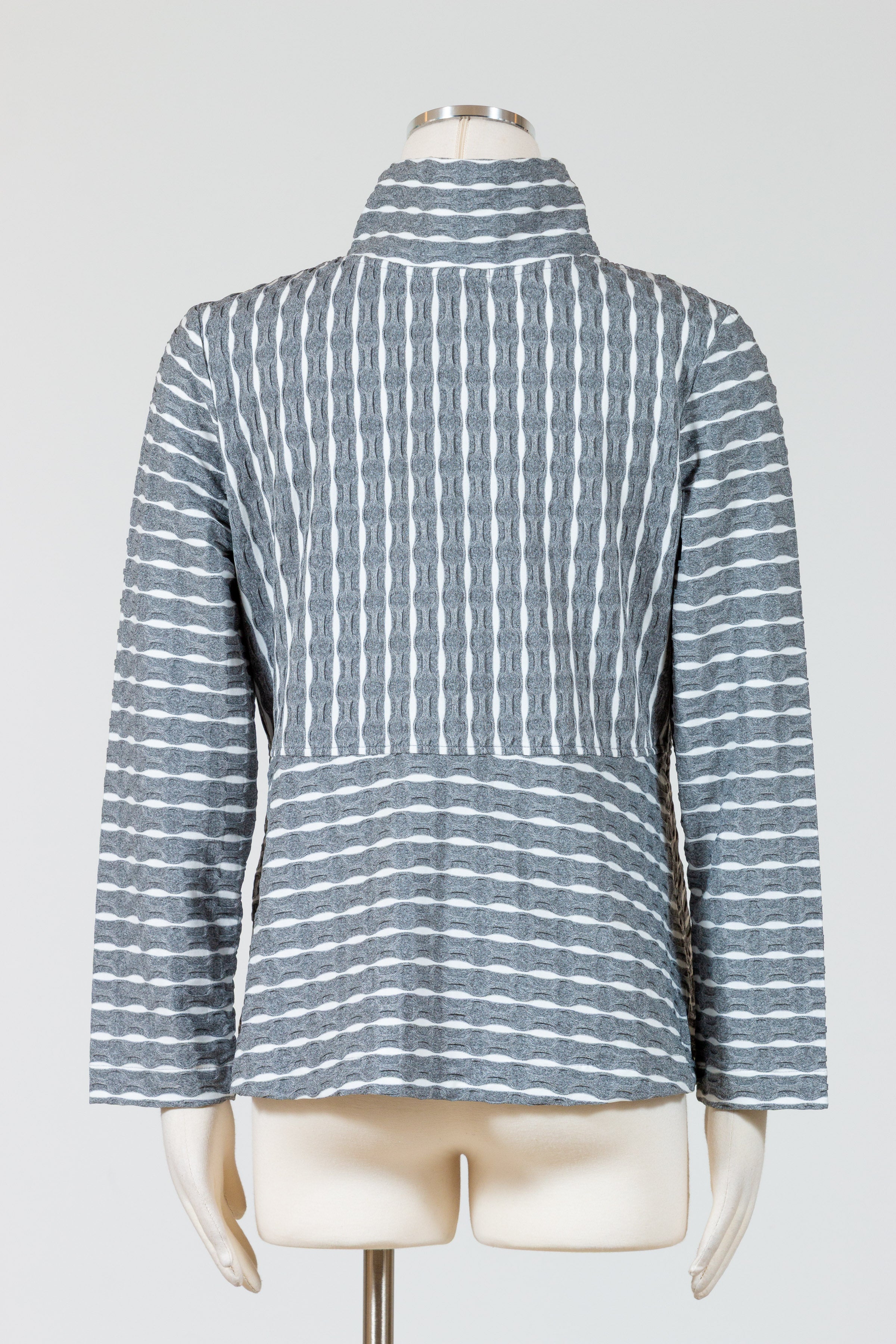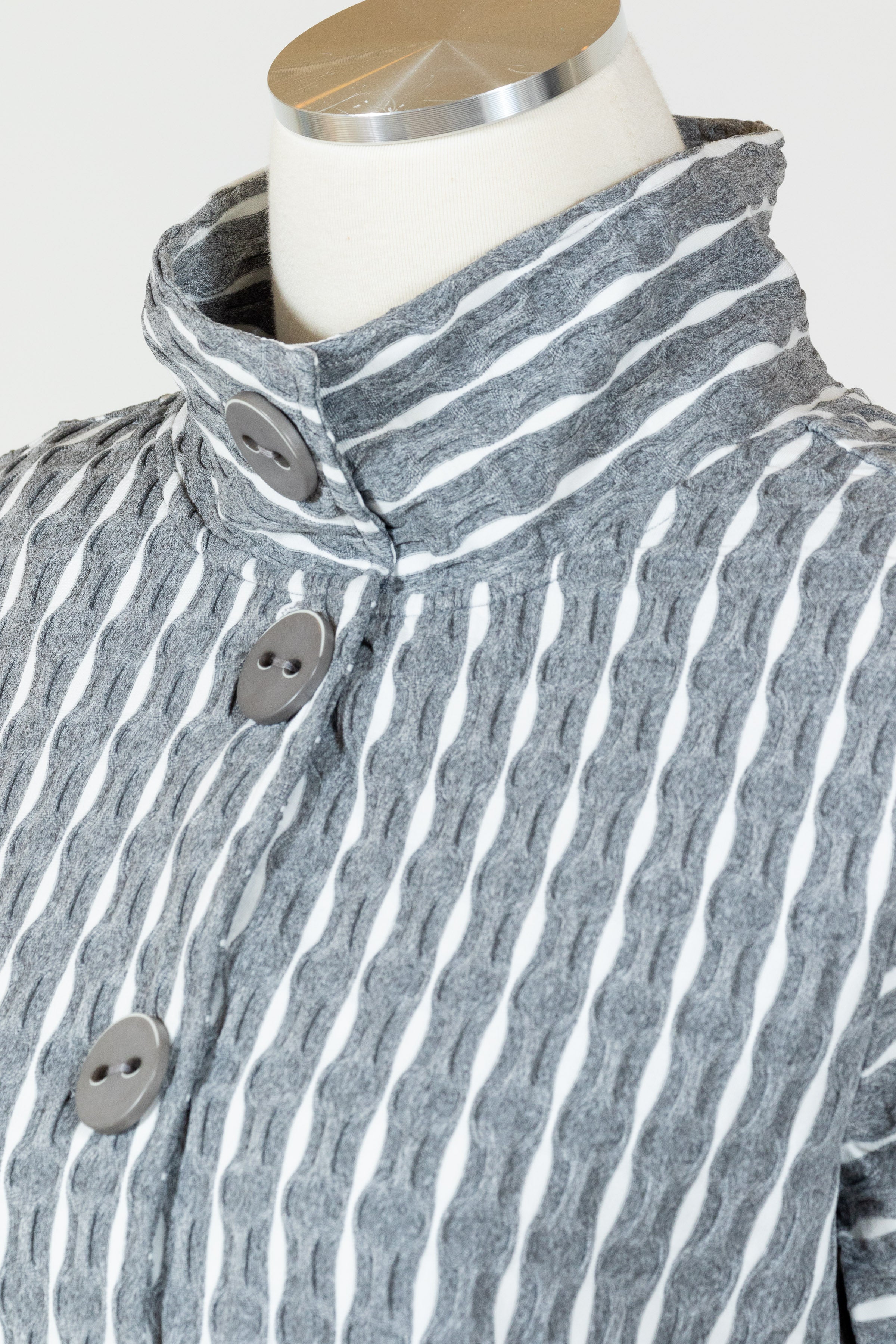 Revamp your wardrobe with Habitat’s Newport Knit Downtown Jacket. This must-have button front stretch knit jacket has a unique puckered stripe pattern that adds a touch of texture. Made with a comfortable and relaxed fit, this jacket is perfect topper that can be worn as a shirt or jacket. Features a high, stand-up collar with oversized decorative buttons and invisible on-seam front pockets. Effortlessly stylish and sophisticated, it hits just below the hips for a polished finish.