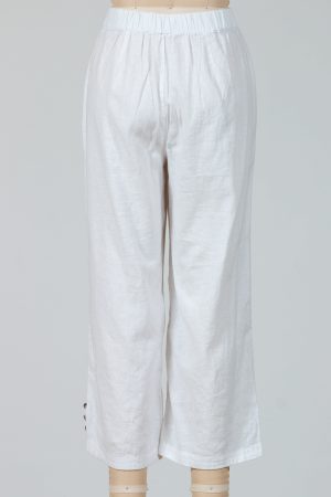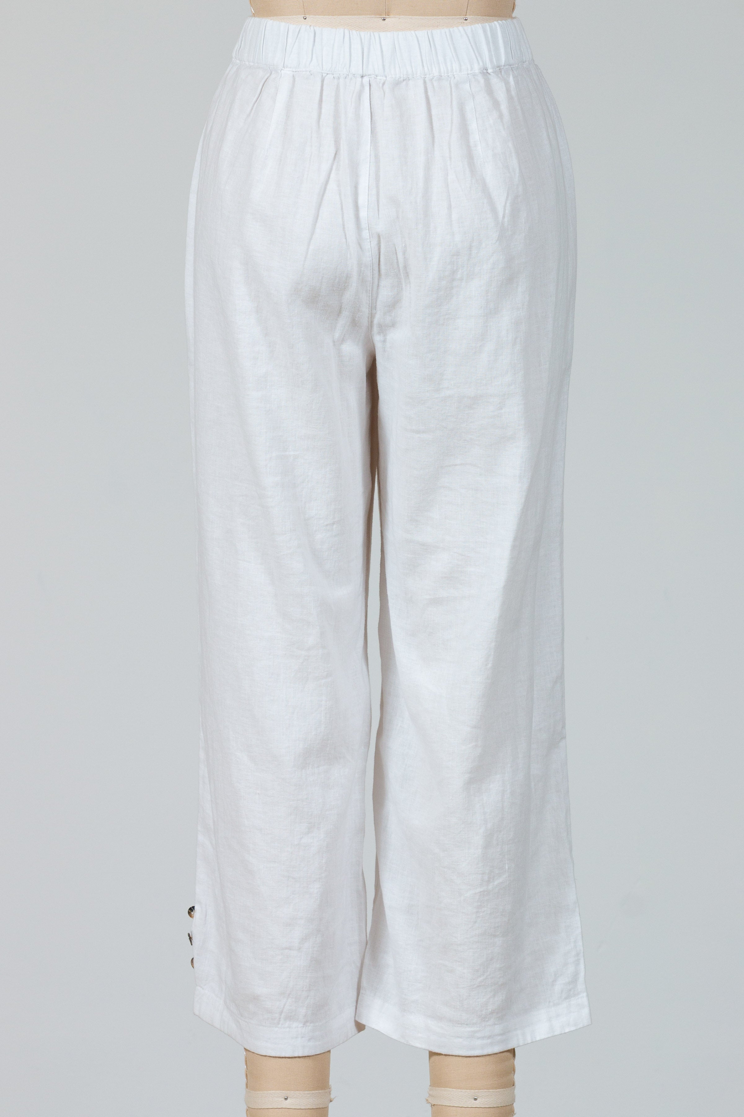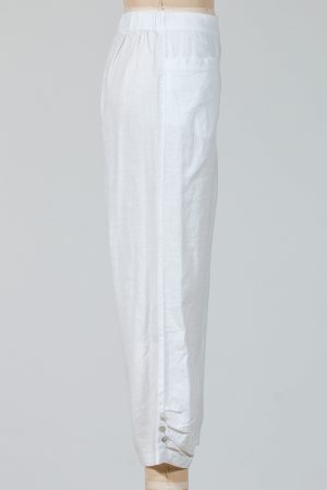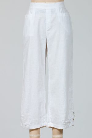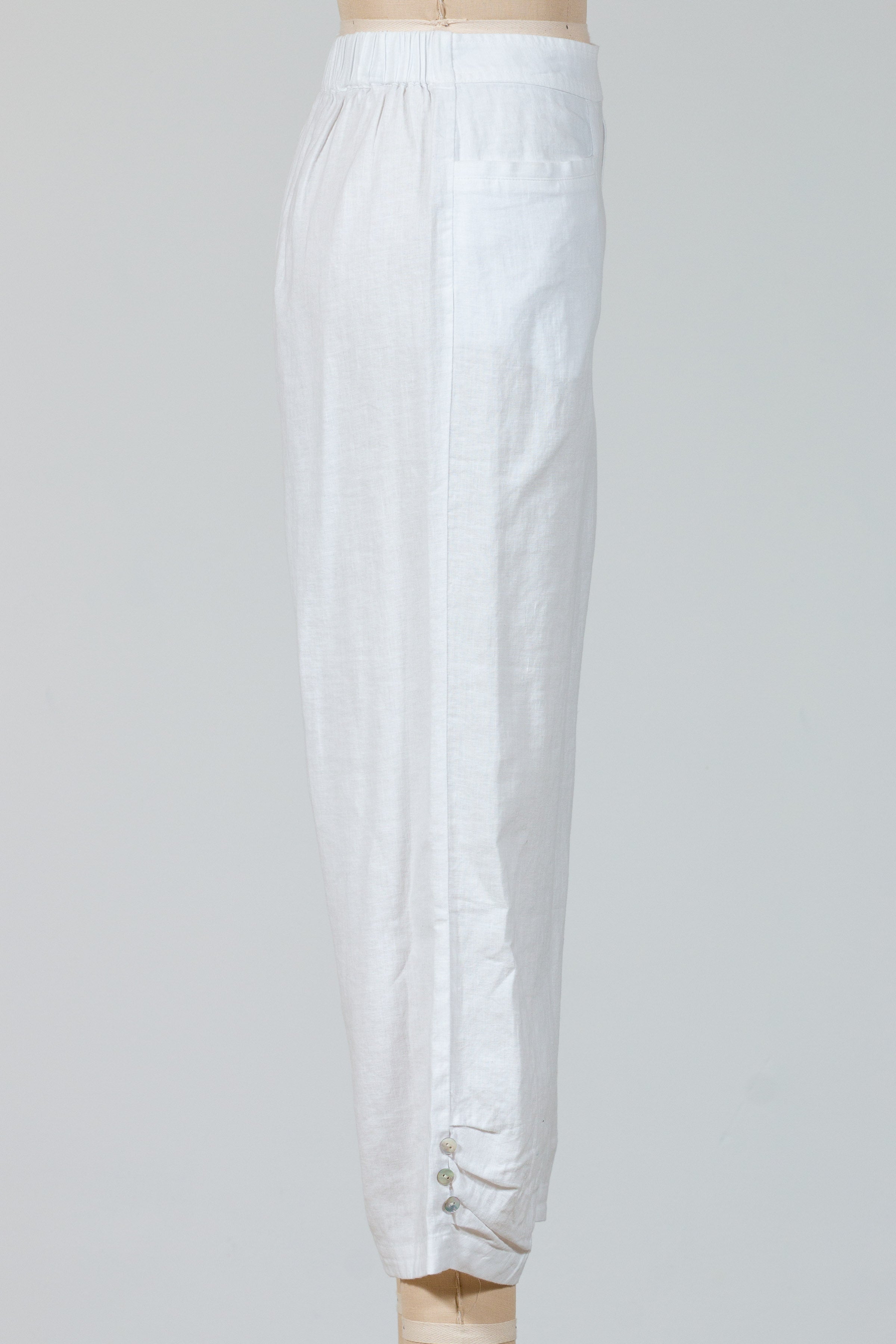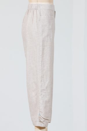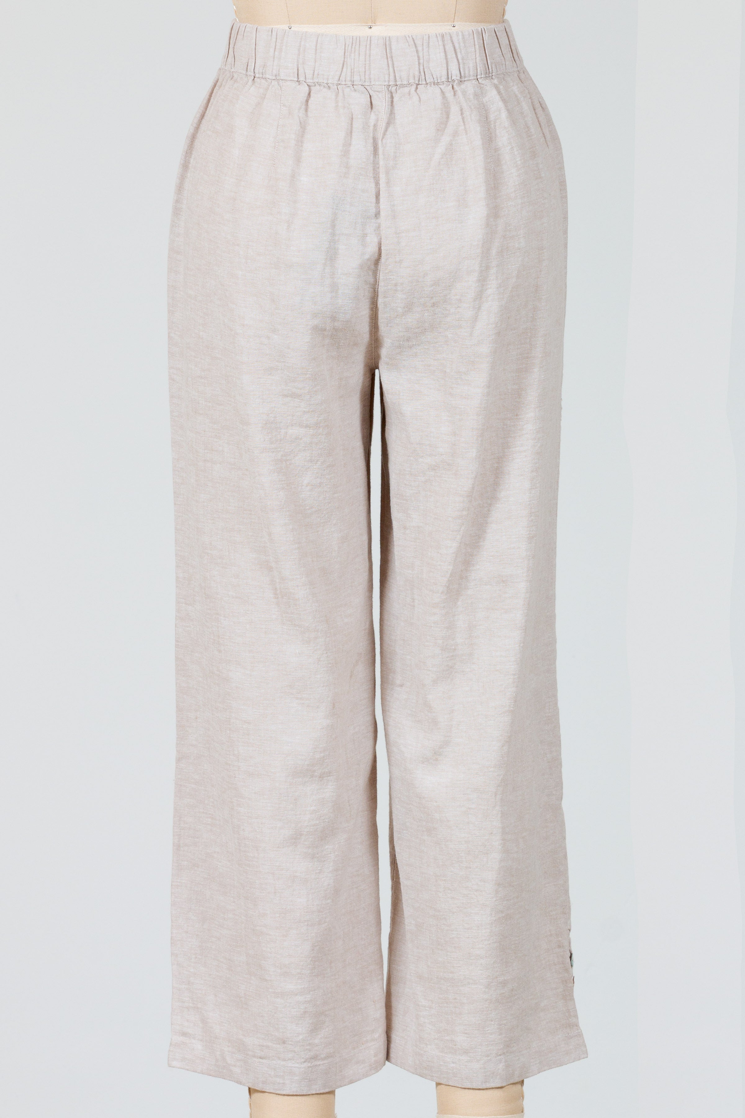Embrace the relaxed vibe of summer with Habitat Pleat Button Capris – a versatile and comfortable pull-on linen pant with pleats and buttons at the hem for added interest. Crafted from a lightweight linen-cotton fabric, these capris feature a flat front and elastic back for a perfect fit, along with two front angled pockets. Easy to style and perfect for warm weather, these capris will become your go-to for effortless style and comfort.Â