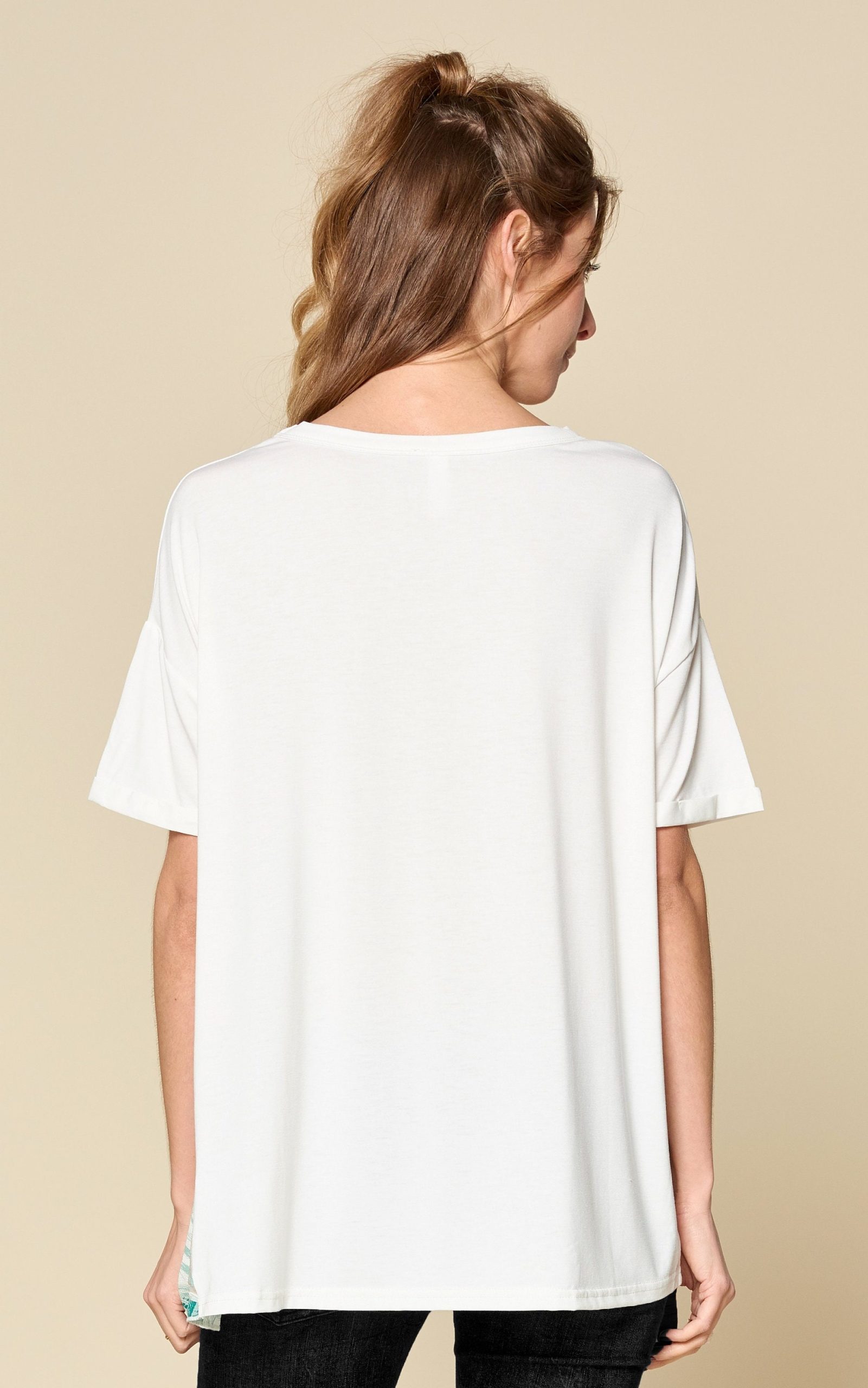 – Short sleeves with rolled-up detail