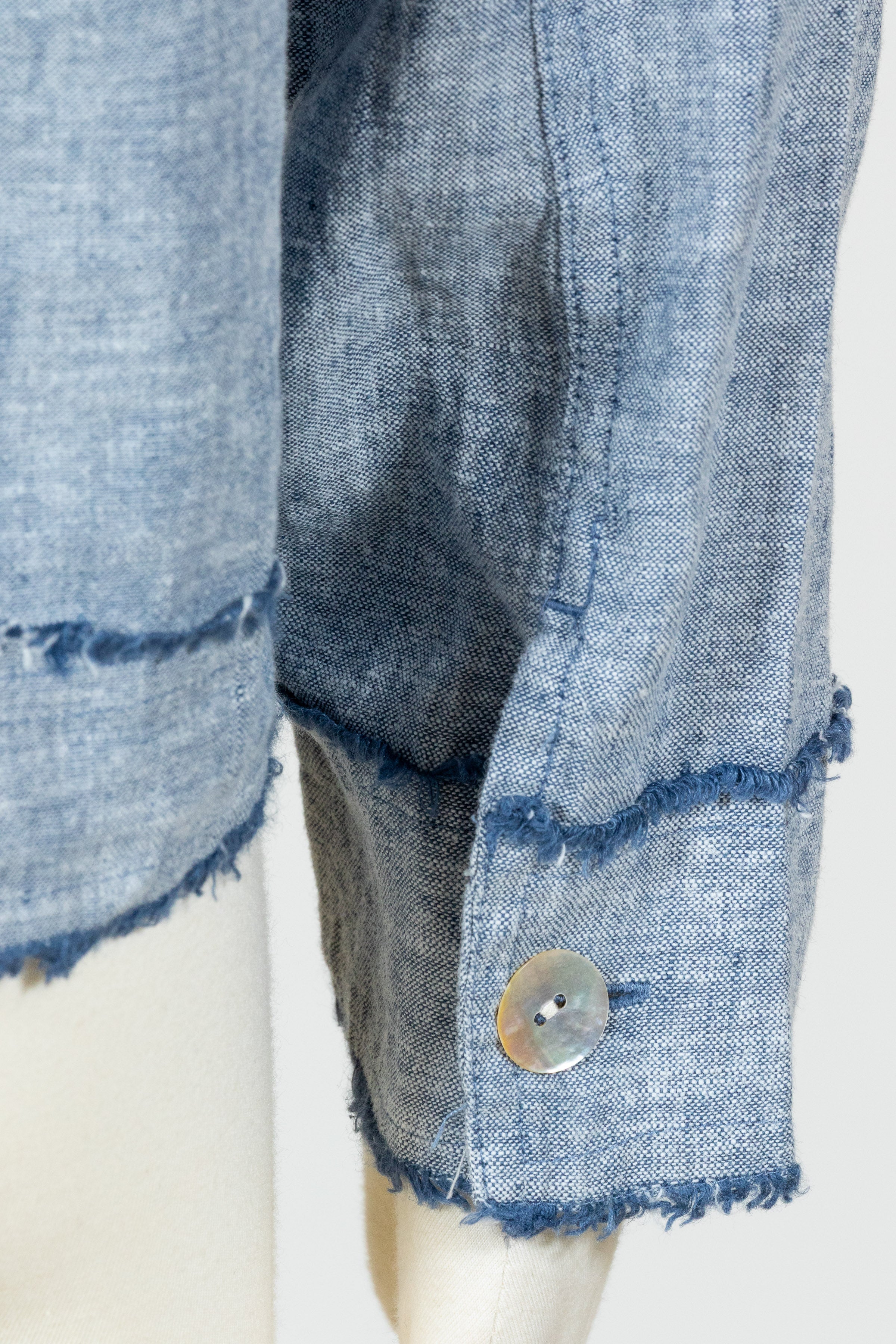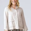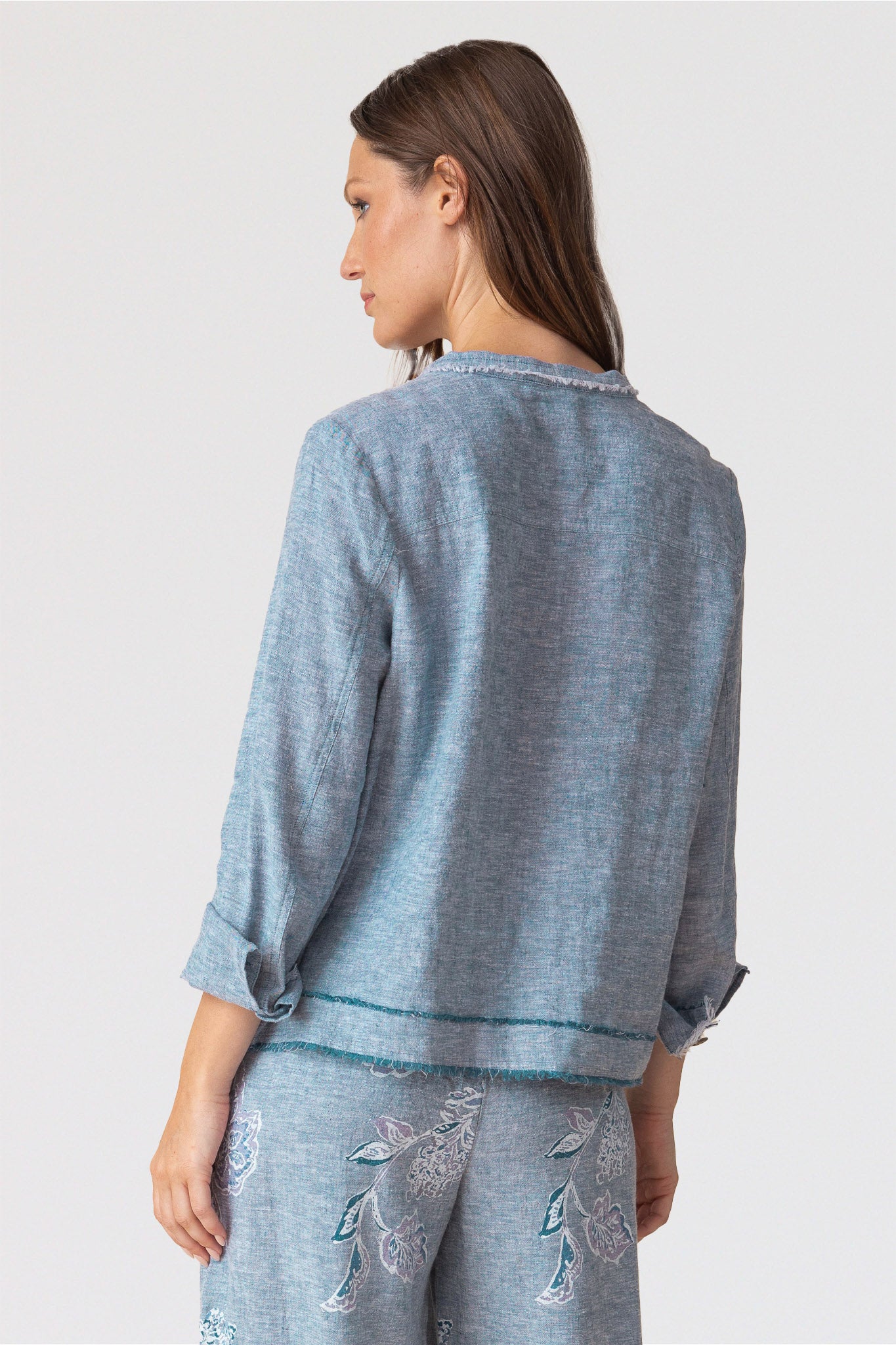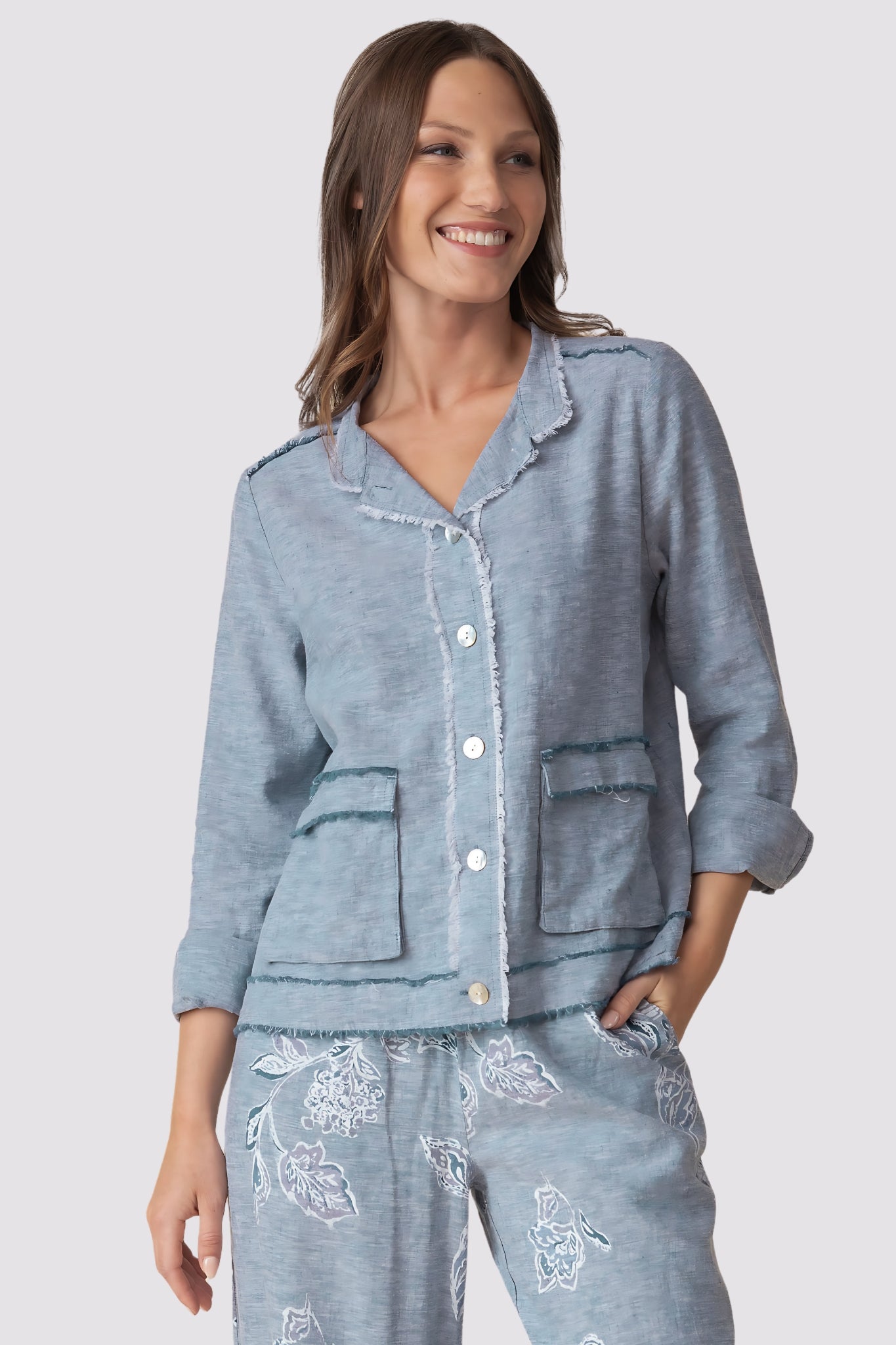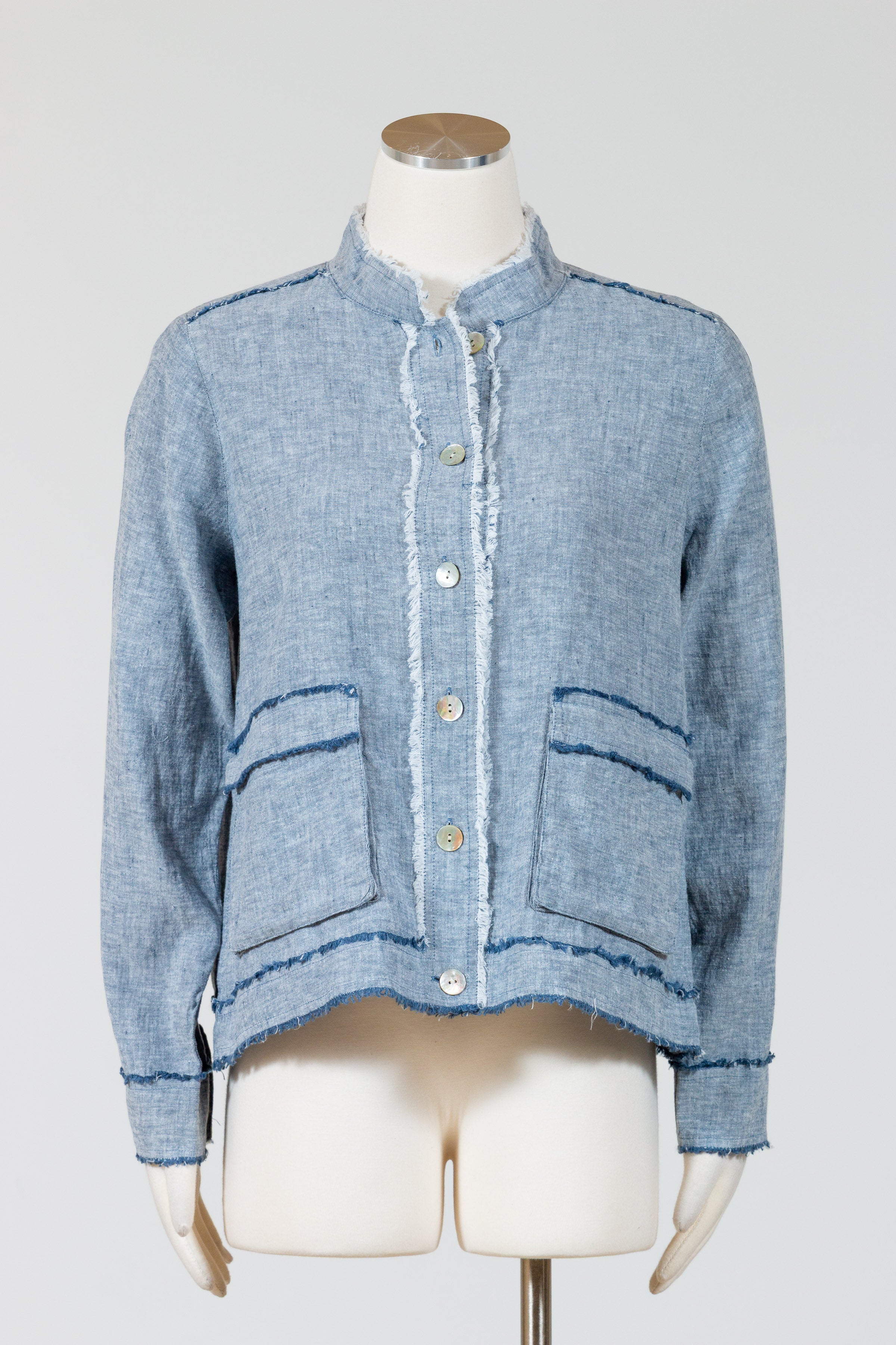 Introducing the Summer Breeze Jacket from Habitat – a luxuriously soft, linen statement piece. Featuring a button front closure, fringe seams, and a mandarin tab collar, this jacket is both functional and stylish. With front patch pockets and banded button cuffs, it offers a loose, boxy fit that falls at the hips. Versatile enough to be worn as a shirt or lightweight jacket, it’s the ideal choice for warm weather. Elevate your wardrobe with this must-have topper.