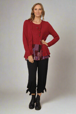 Experience ultimate comfort and style with Chalet’s Tilley Pant. This crinkle knit pull on pant features pockets and a high side slit at the hem, providing functionality and effortless elegance. Similar to the popular Chalet’s Larshell Pant, these pants also come with pockets for added convenience. The Tilley has a loose straight leg that falls long, over the ankles, and can be worn in two ways – tied up for a crop length or fully down for full leg coverage. The elastic waist and full fit make these pants perfect for all-day wear and to perfectly complement any top. Elevate your wardrobe with the Tilley Pant today!